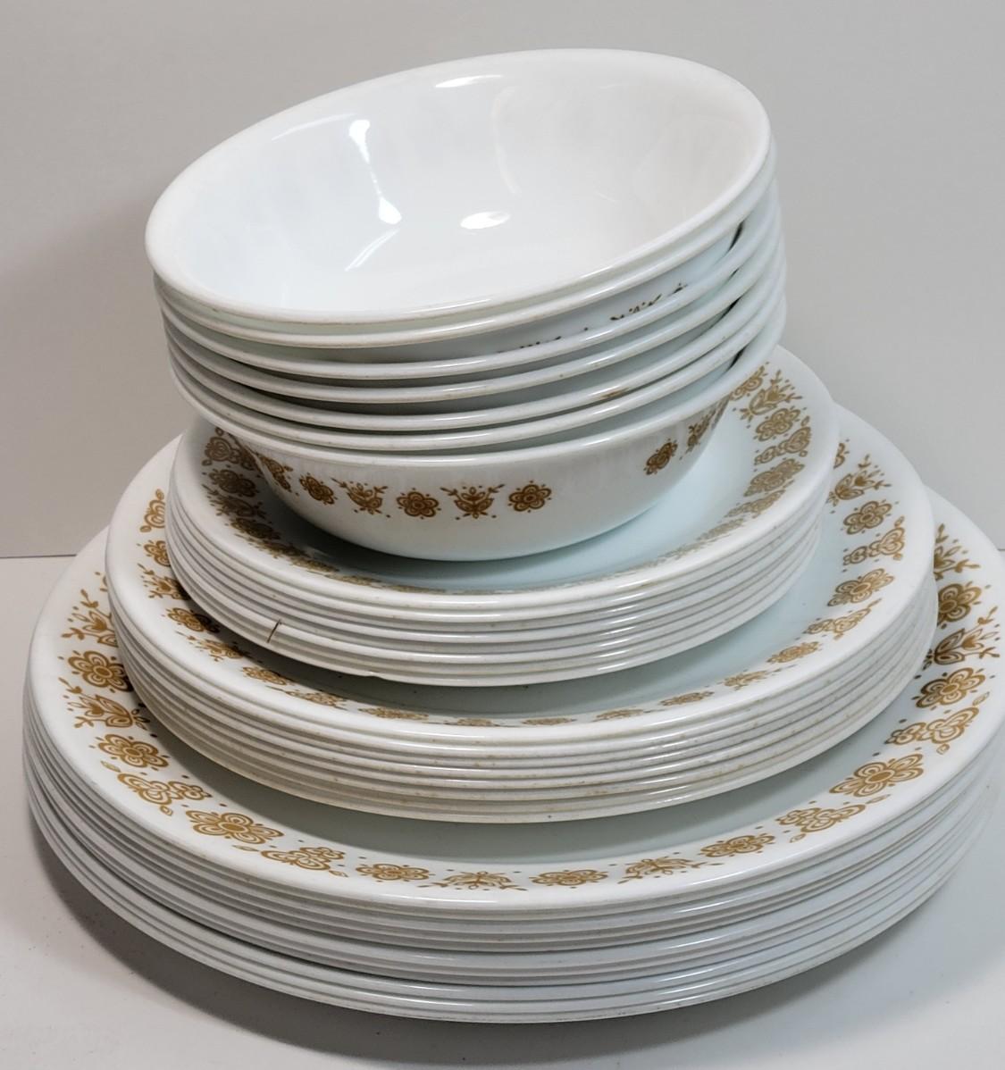 LOT169:  Vintage 1970's Butterfly Gold Corelle /Pyrex Dinnerware