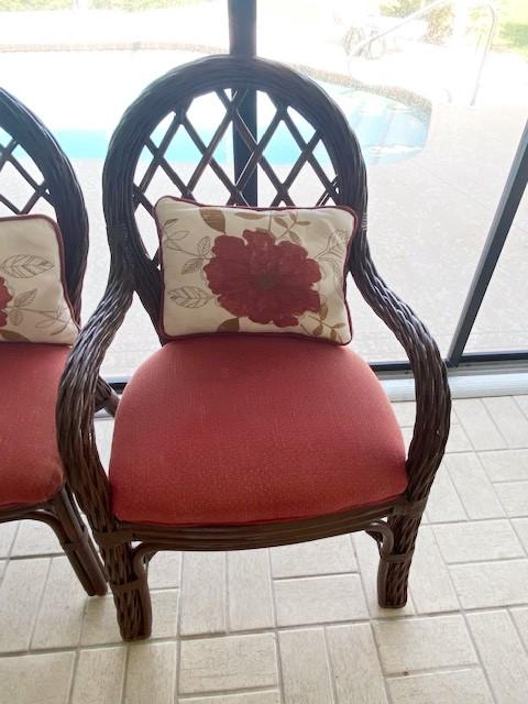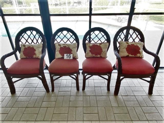 Two captain's chairs and two standard chairs. Includes cushions as pictured. No obvious signs of damage. Measurement: 39"H x 24"W x 21"D