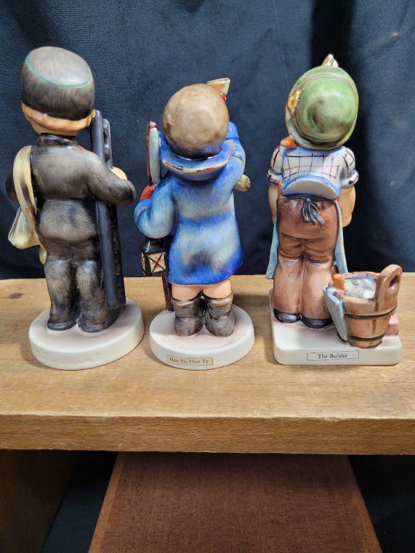 "The Builder" has mild crazing on the bricks and apron. "Chimney Sweep" has mild face and light crazing on his base. "Hear Ye Hear Ye" is mint condition.