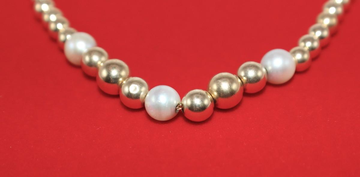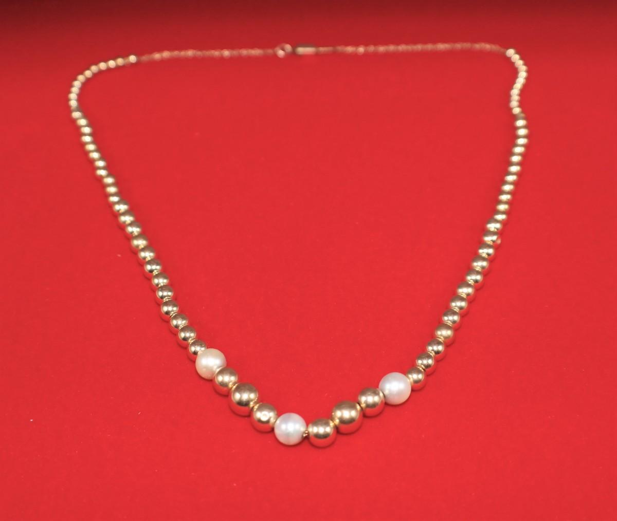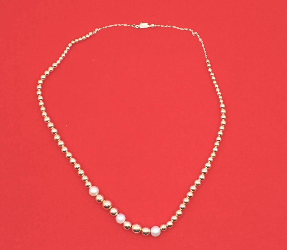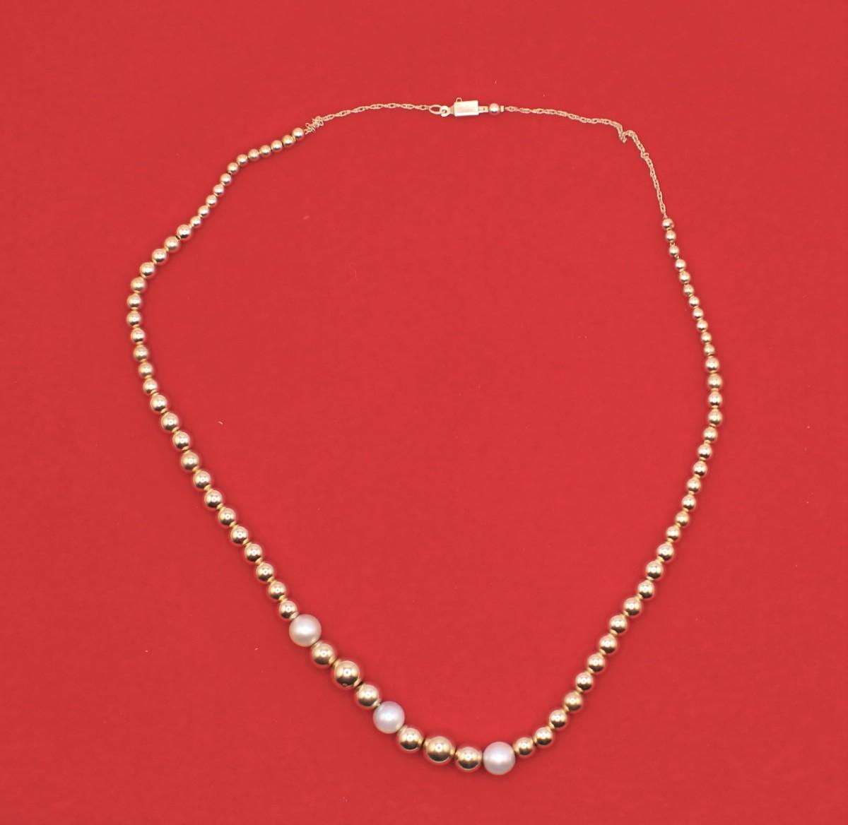 LOT#17: Stamped 14K Graduated Pearl & Gold Bead Necklace [4.27g]