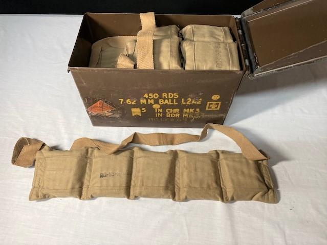 450 rounds. With metal box. Belts of 5 magazines. Estimated weight of lot: 25lbs. Measurement: 12" x 7"