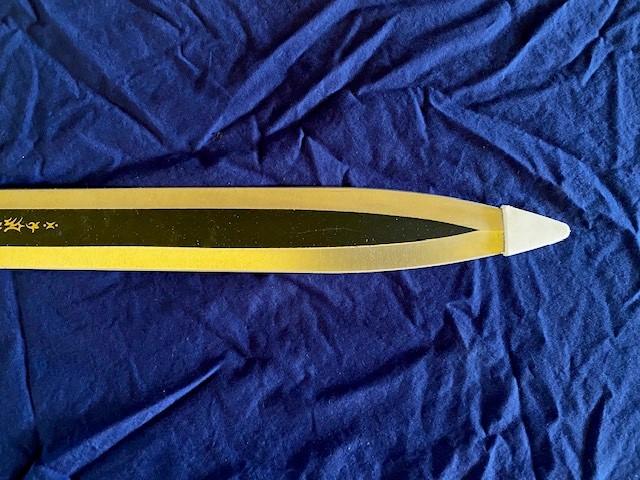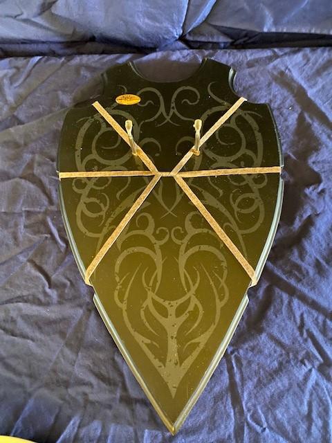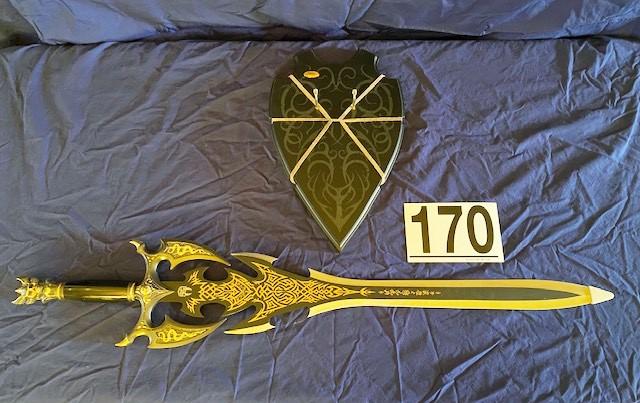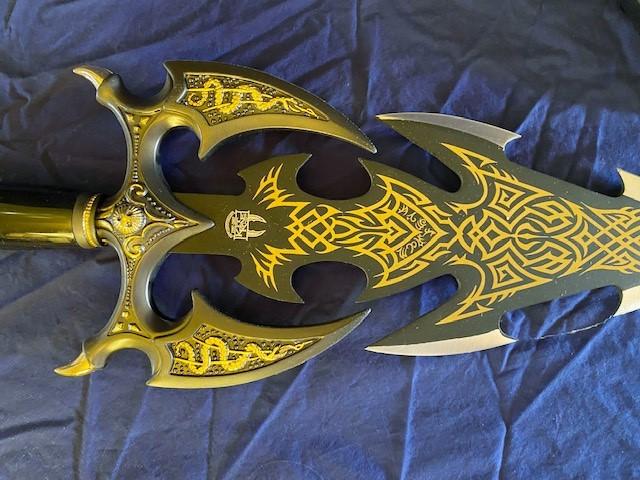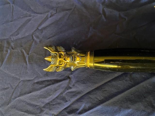 Ornate pommel with skull. Includes wall bracket. Measurement: 35"L