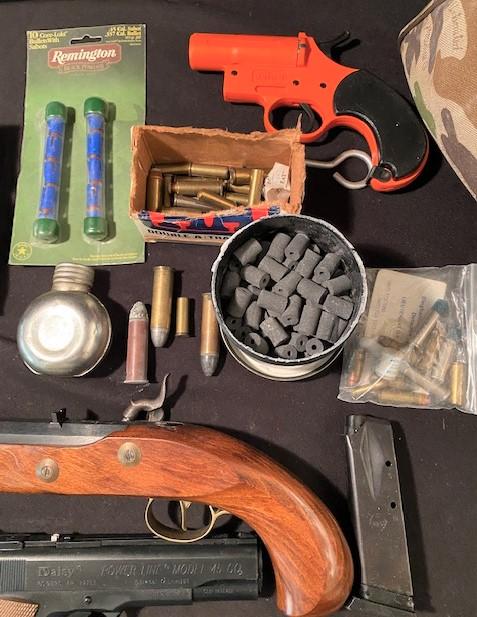 Includes: Daisy Powerline pistol, Connecticut Valley arms (Spain)black powder, flare gun & more. Estimated weight of lot: lbs. Measurement: