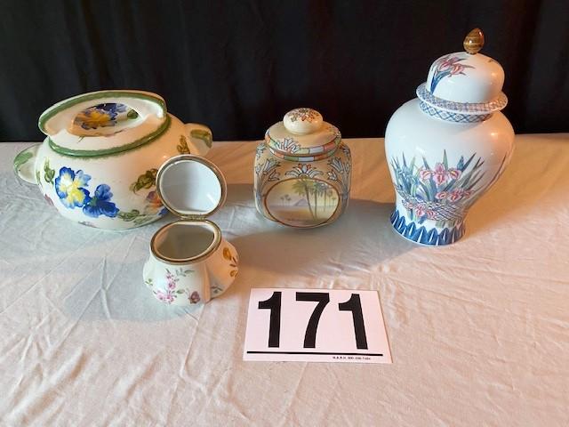 Nippon and more. Includes powder jar, covered jars, and more. Total of four pieces.