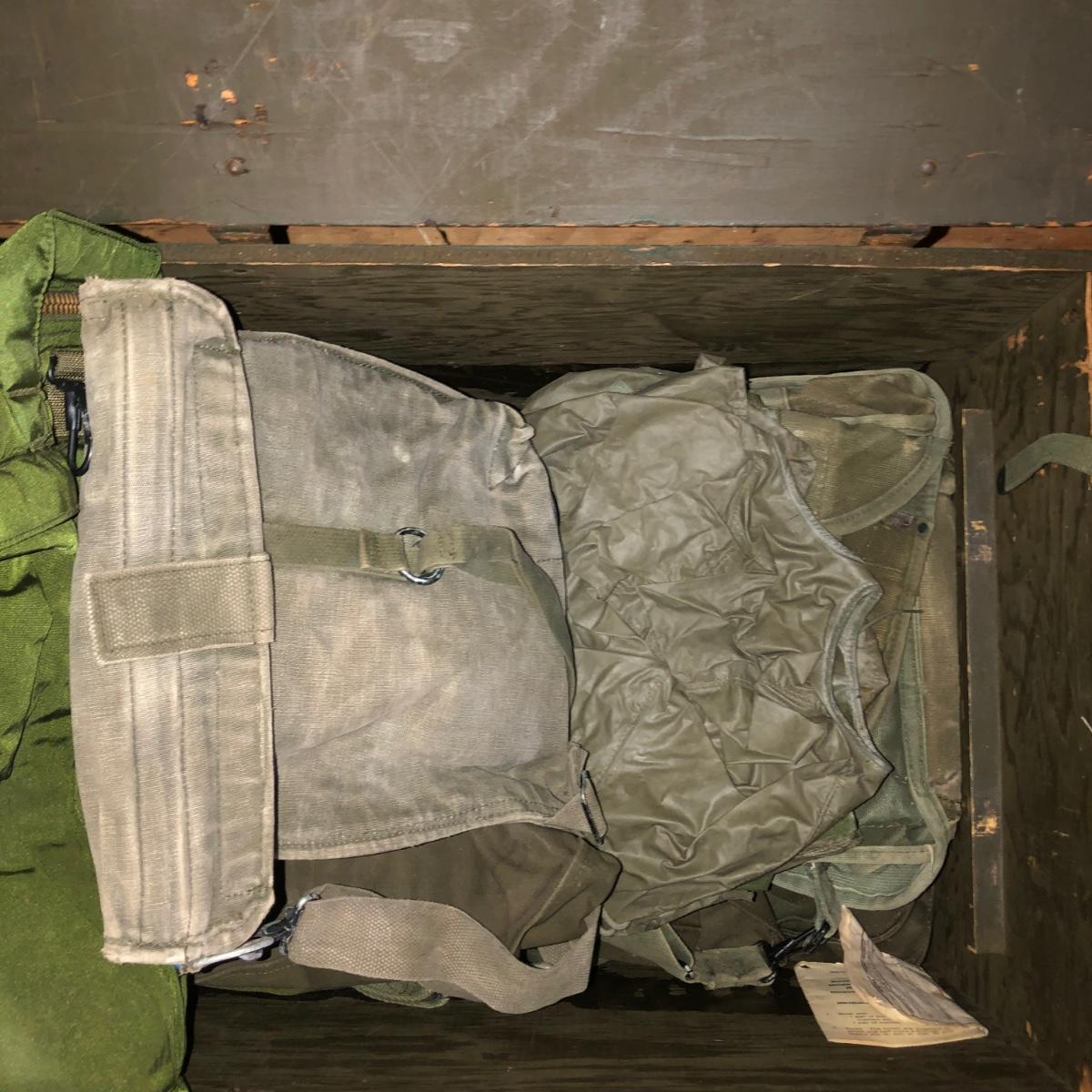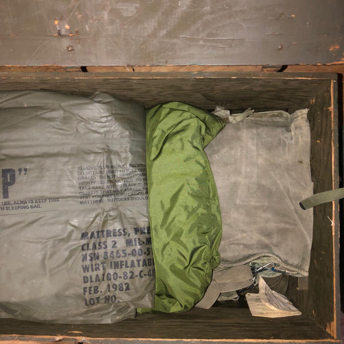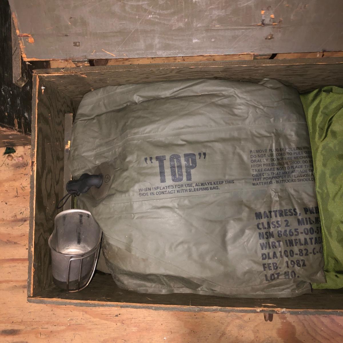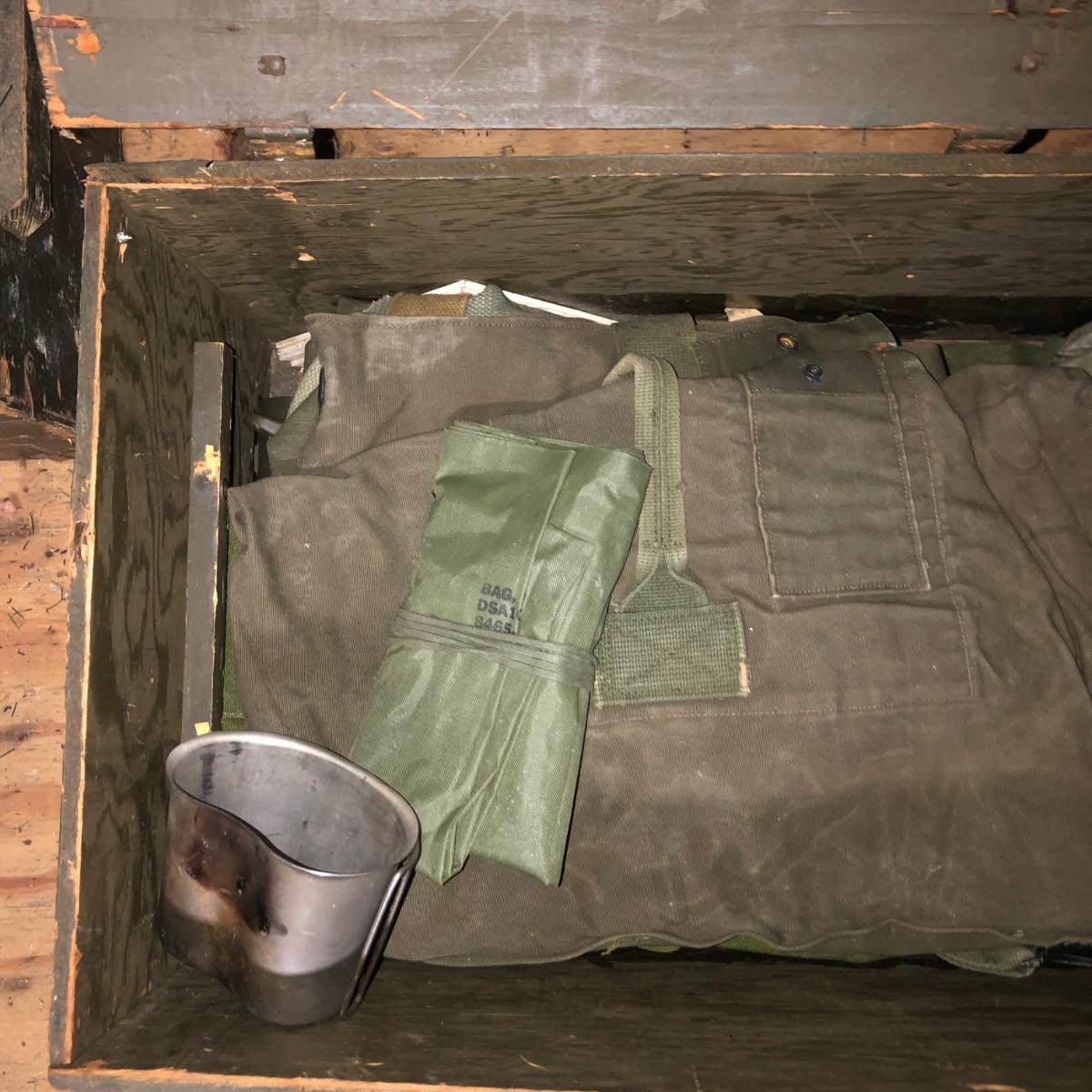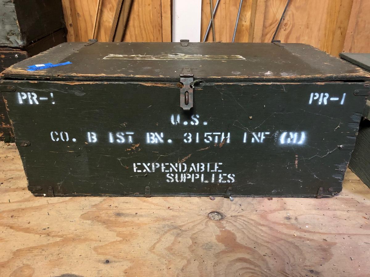 One footlocker of unsorted military items. Footlocker measures 32 x 12 x 16 inches.