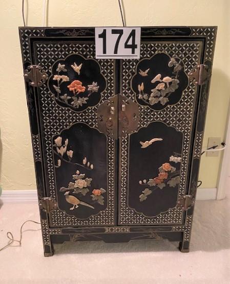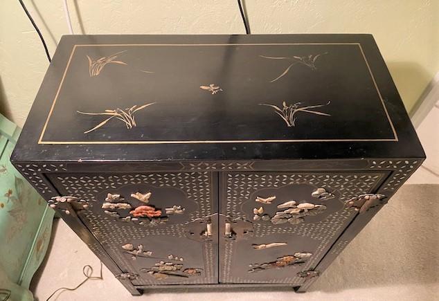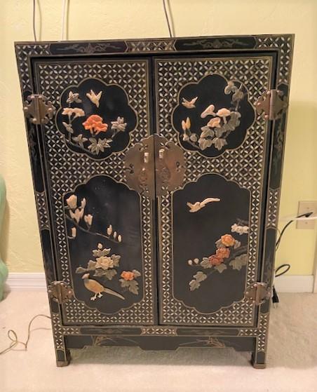 With Mother of Pearl & Jade accents. Estimated weight of lot: 30lbs. Measurement: 36 1/2"H x 25"W x 12"D
