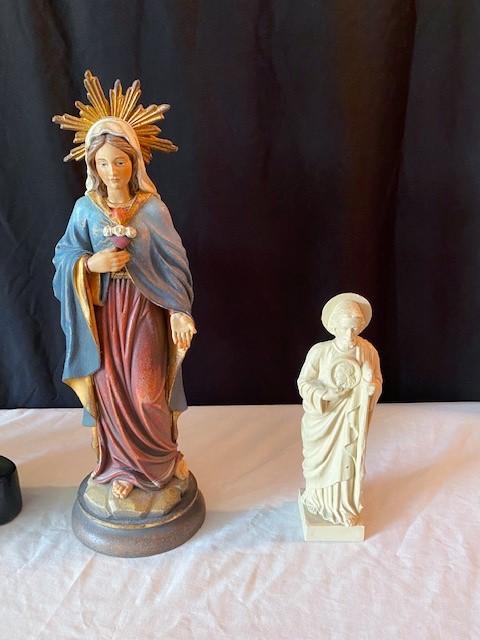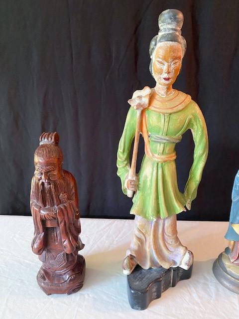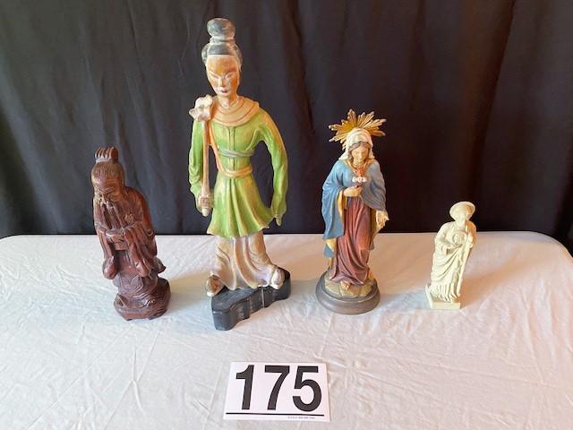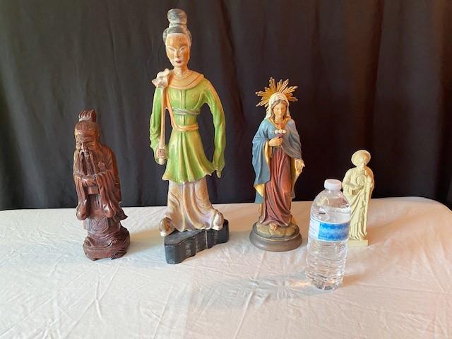Includes Confucius, Jesus, Mary, and more. Wood and resin construction. Four pieces. Measurement: 19"H (tallest)