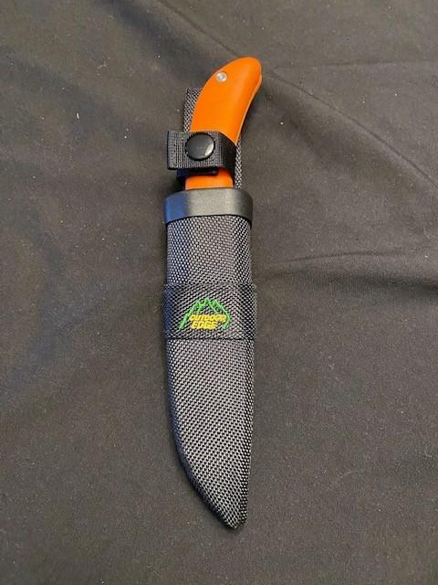Skinning knife with gut hook. Estimated weight of lot: 1 lbs. Measurement: 8" x 8" x 2"D