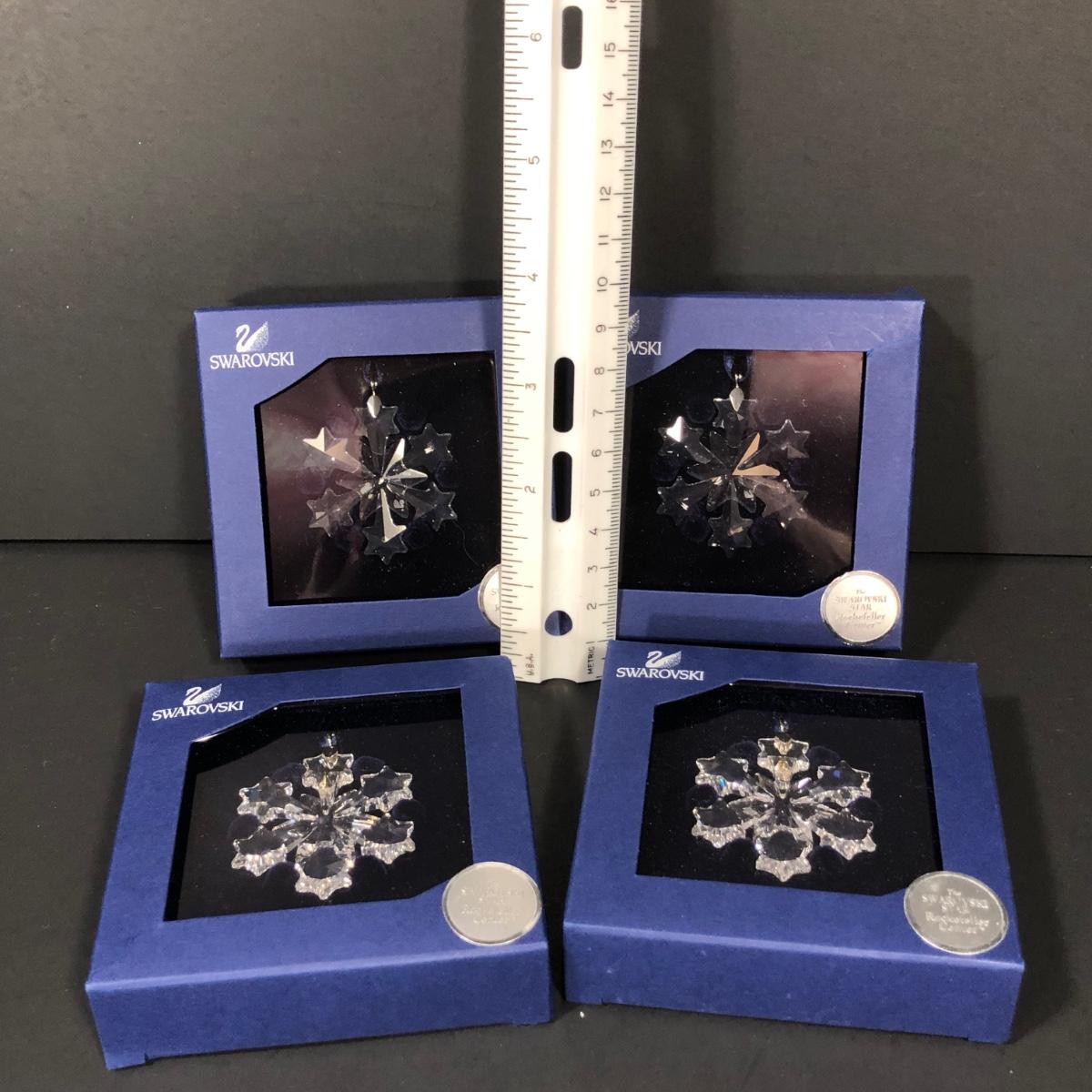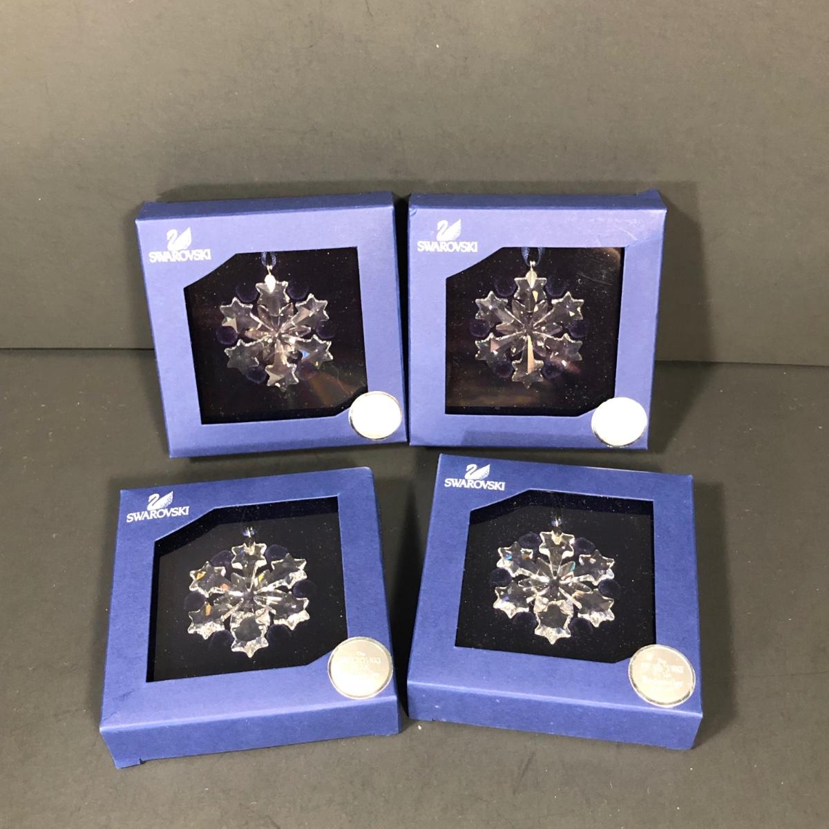 Includes 4 packaged crystal "Little Snowflake" ornaments made by Swarovski in Austria.