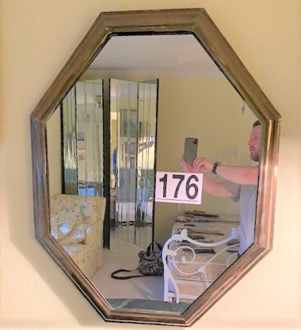 LOT#176MB: Vintage Octagonal Mirror with Brass Frame