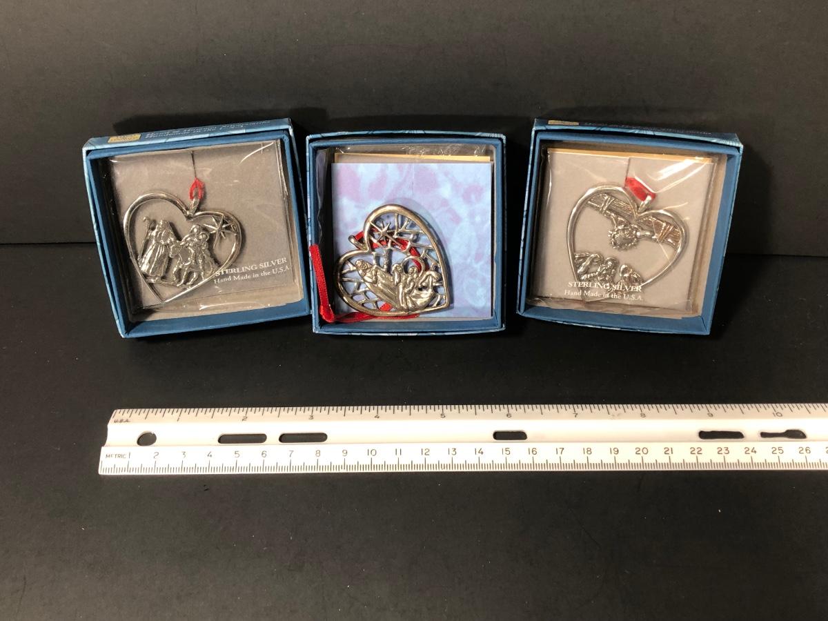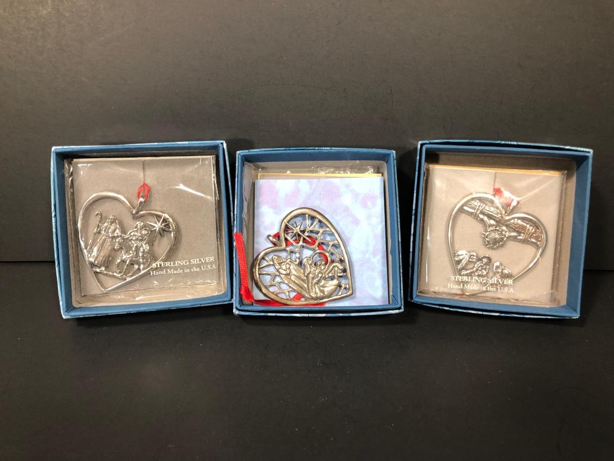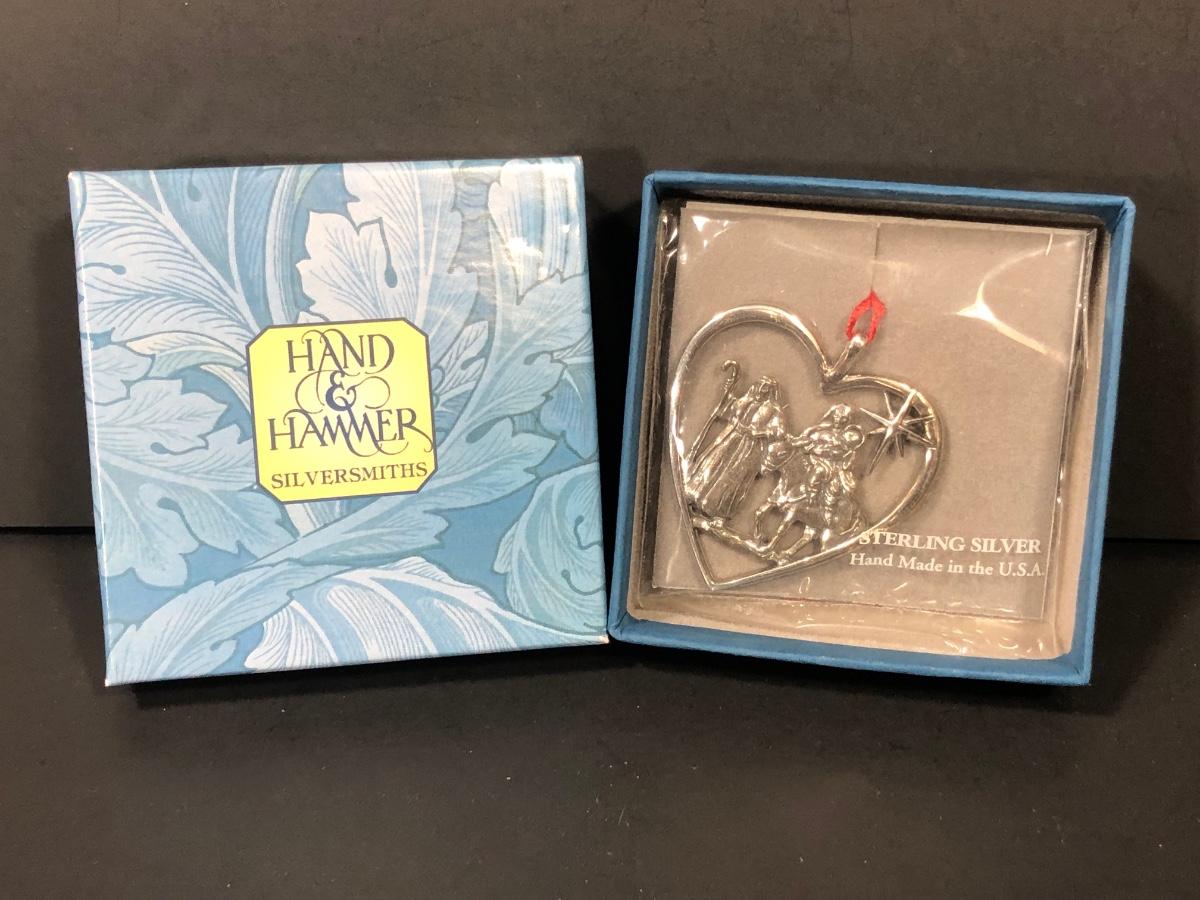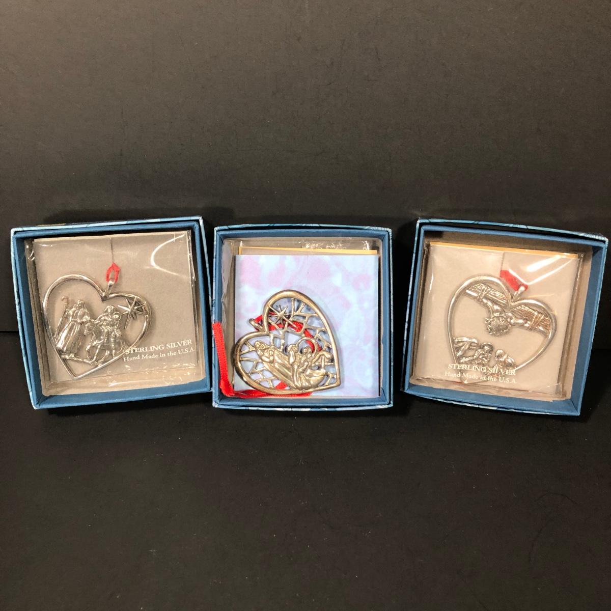 Includes 3 sterling silver ornaments from Peggy Hart made by Hand & Hammer Silversmiths.