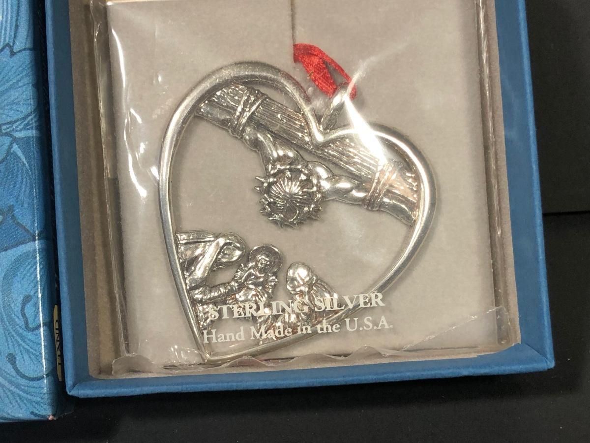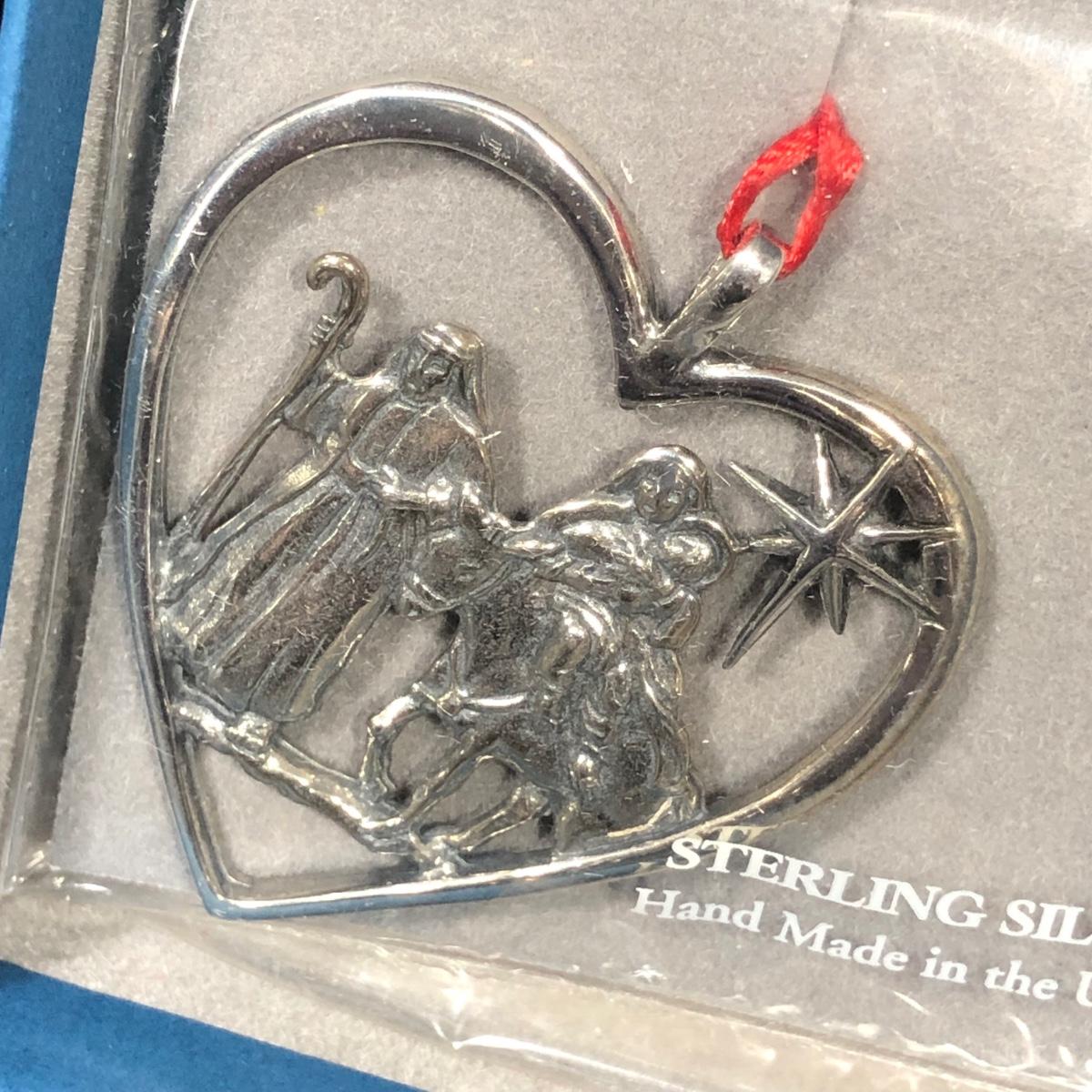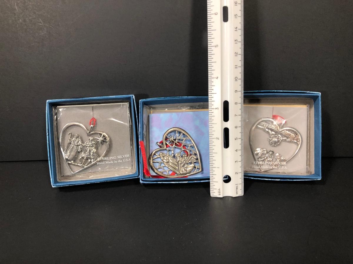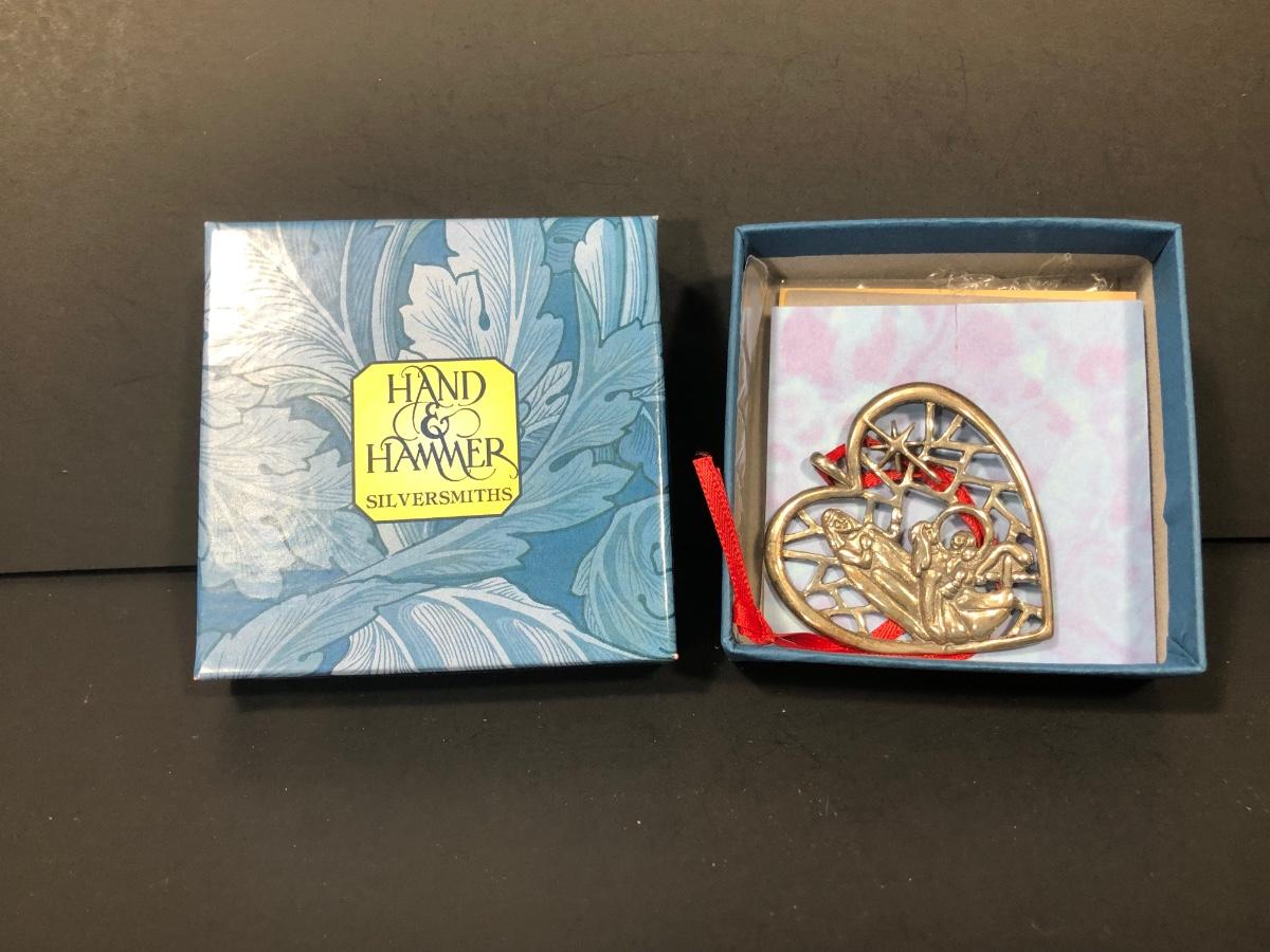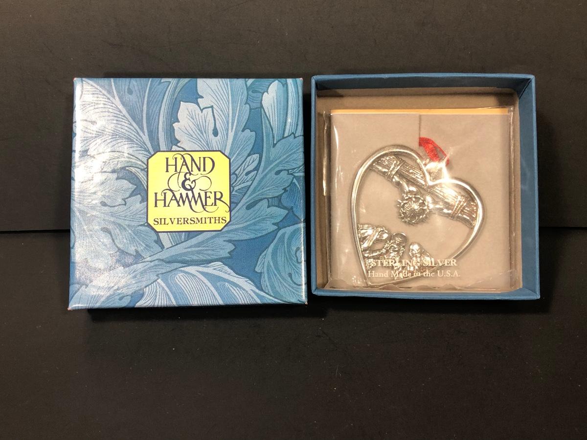 Includes 3 sterling silver ornaments from Peggy Hart made by Hand & Hammer Silversmiths.