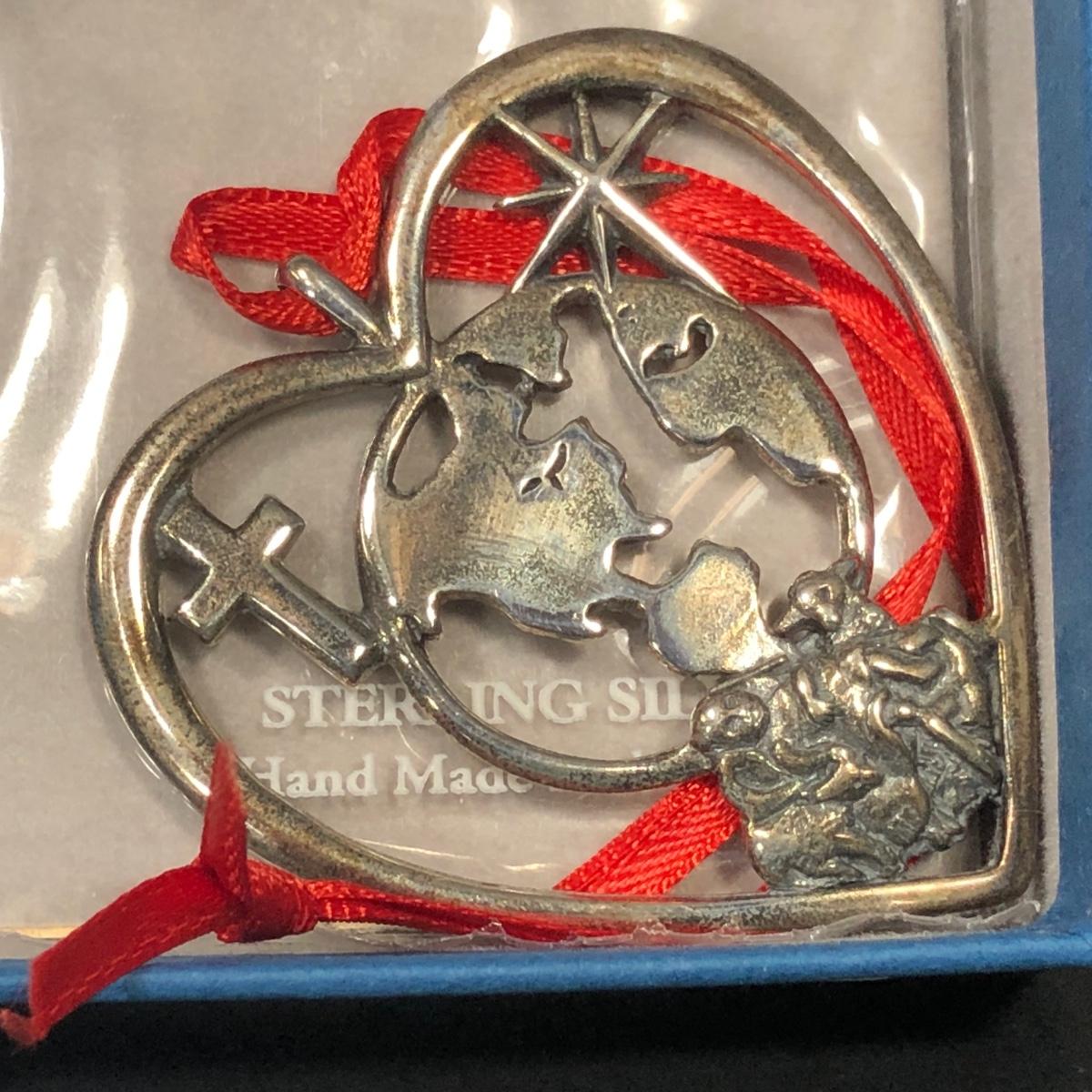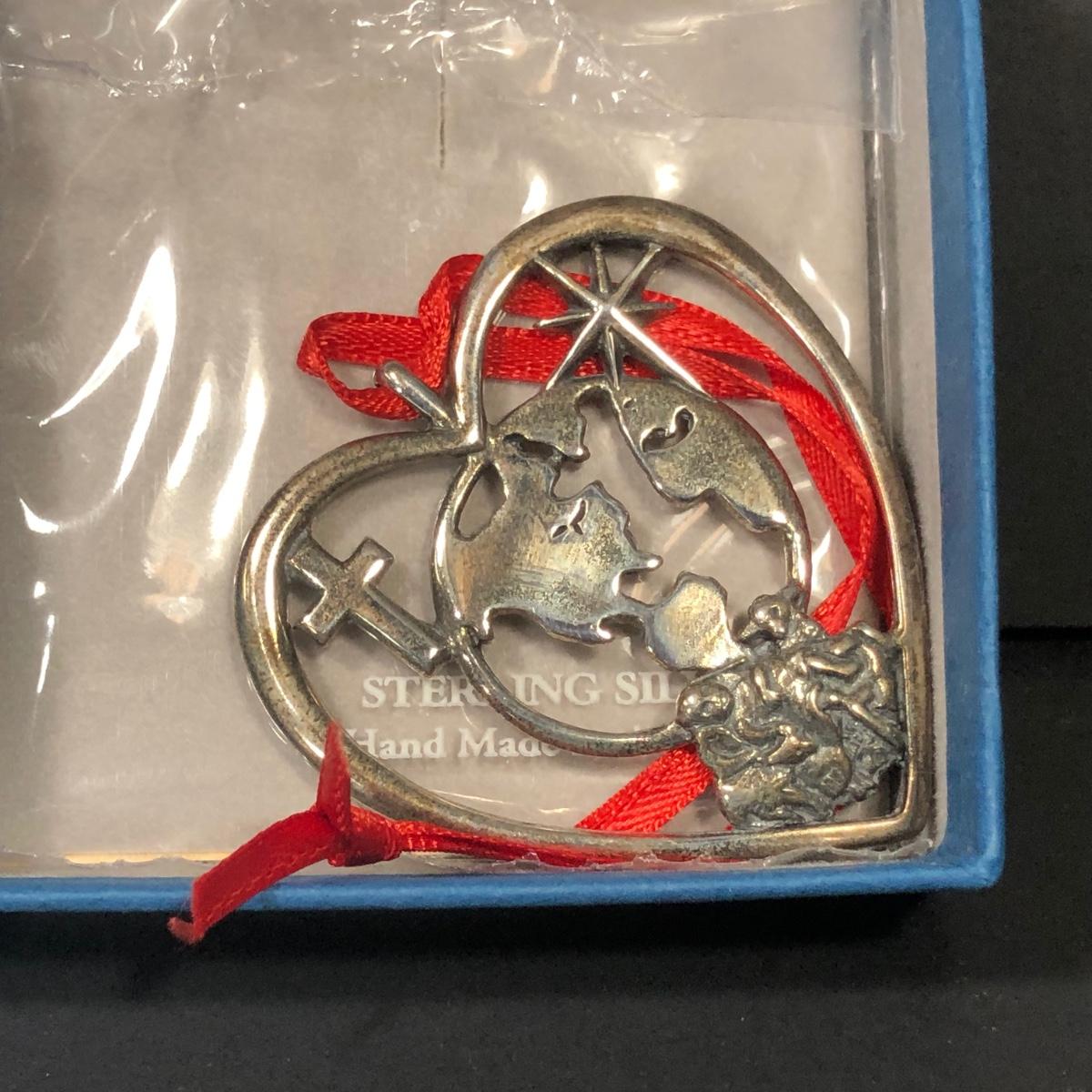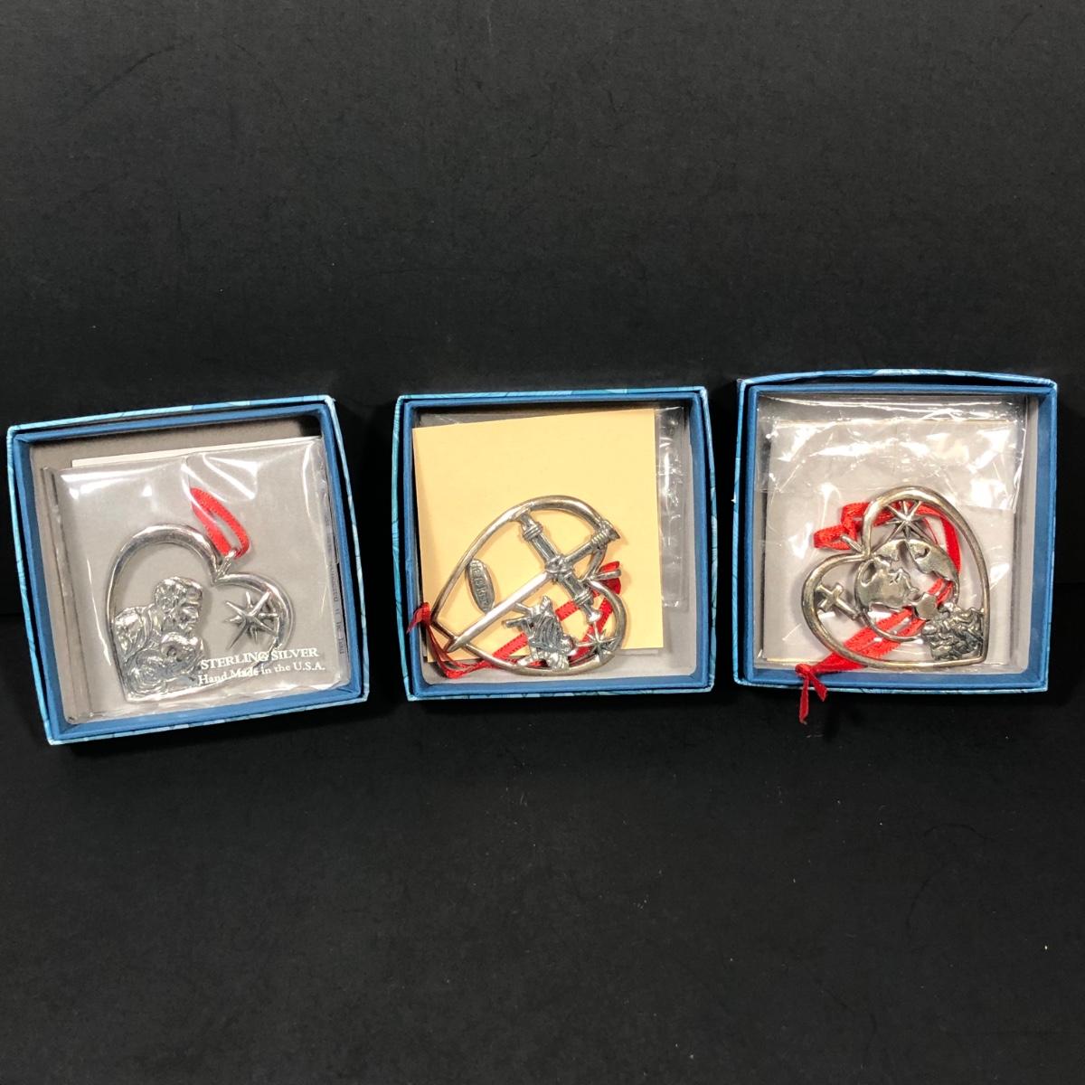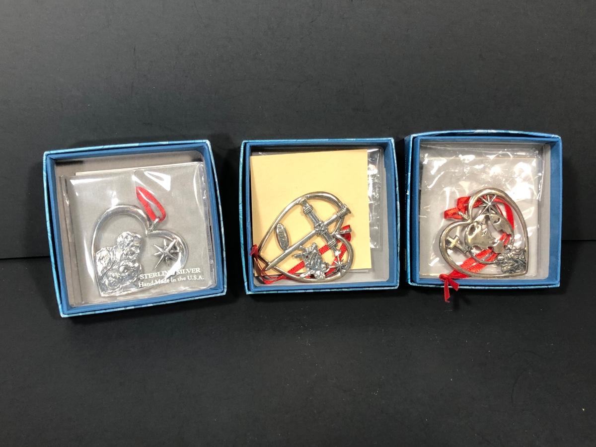 Includes 3 sterling silver Christmas ornaments from Peggy Hart made by Hand & Hammer Silversmiths.