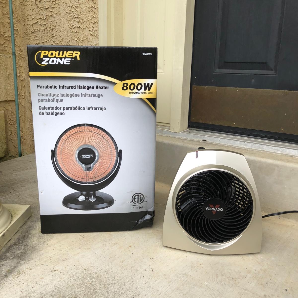 LOT179M: PowerZone 800W Parabolic Infrared Halogen Heater & Small Vornado Fan