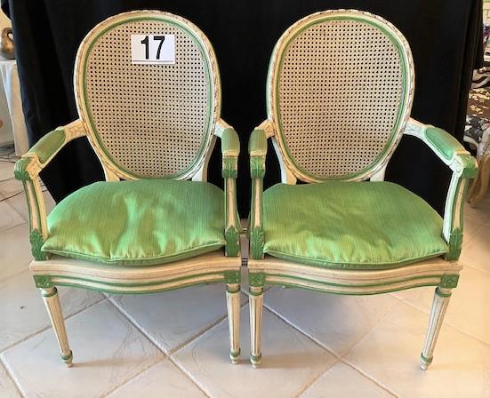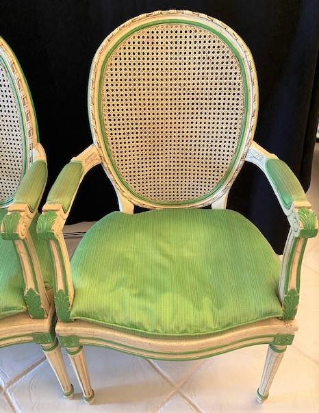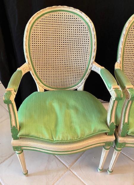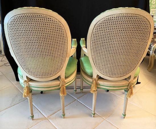 Caned back & seats. Painted. Empire style legs. Estimated weight of lot: 20lbs. Measurement: 47"H x 18"D x 22"W (each)