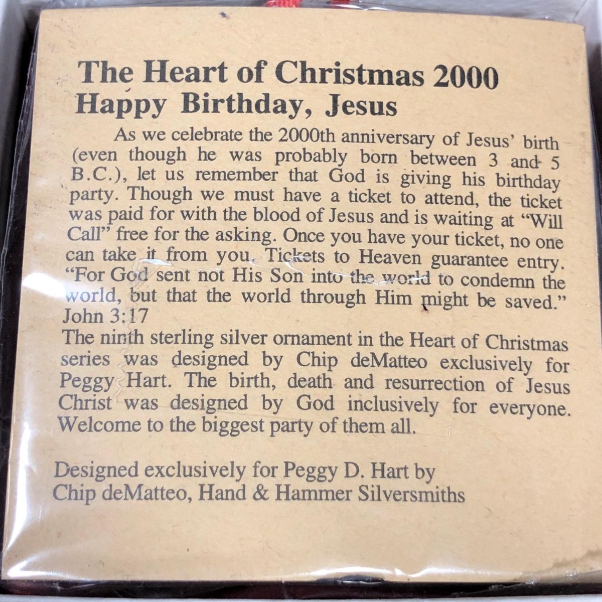 Millennium Happy Birthday Jesus Heart. Three kings ornament. 1999 Holy Family Heart ornament. All three included with their boxes.