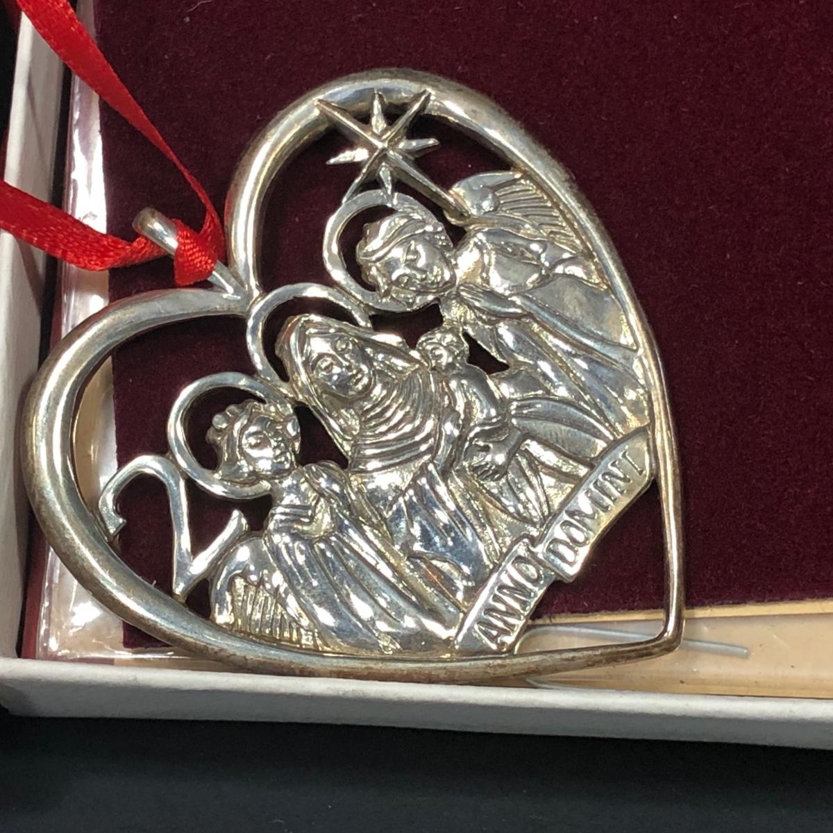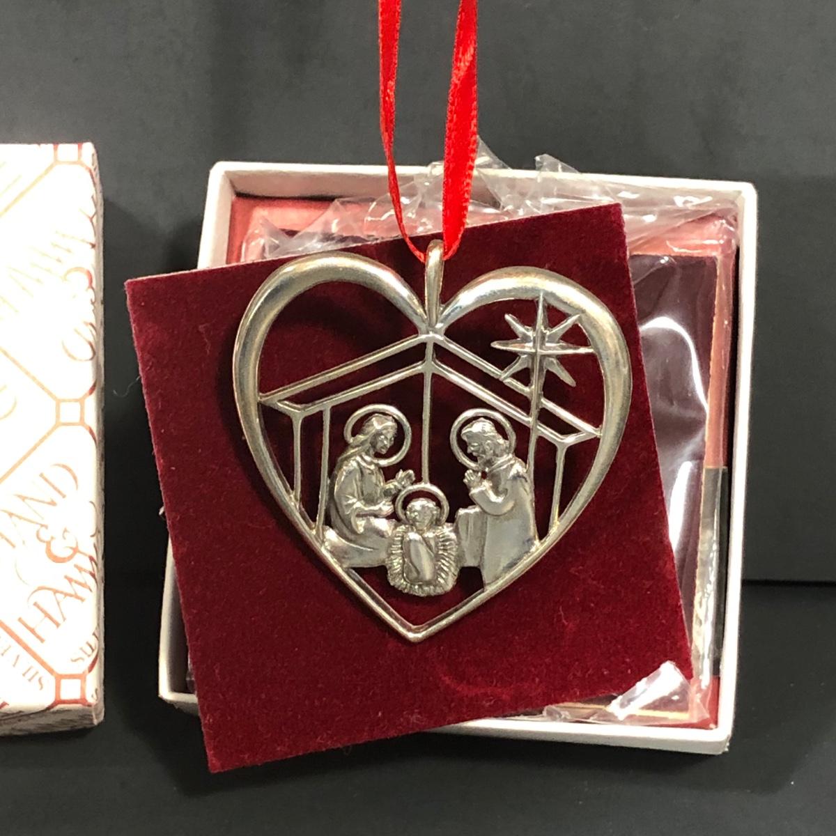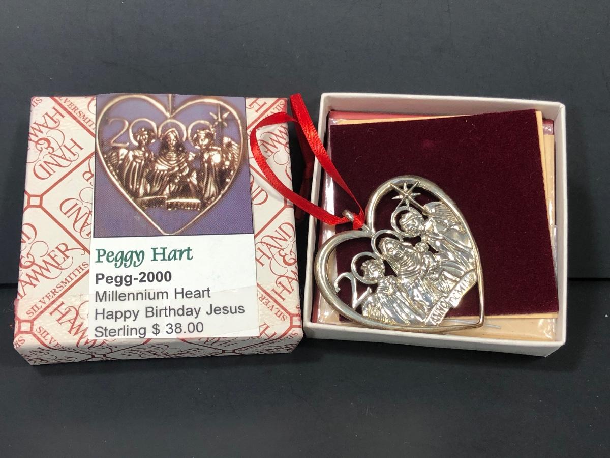 Includes 3 sterling silver ornaments from Peggy Hart made by Hand & Hammer Silversmiths.