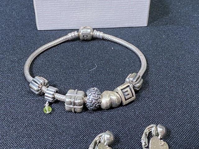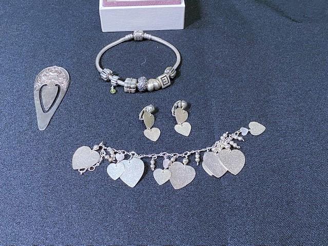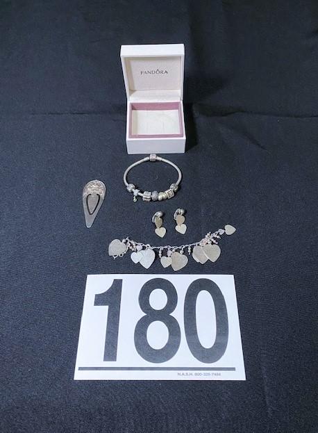 Includes: Kirk & Sons clip, Pandora bracelet and bracelet & clip earring set; marked sterling.