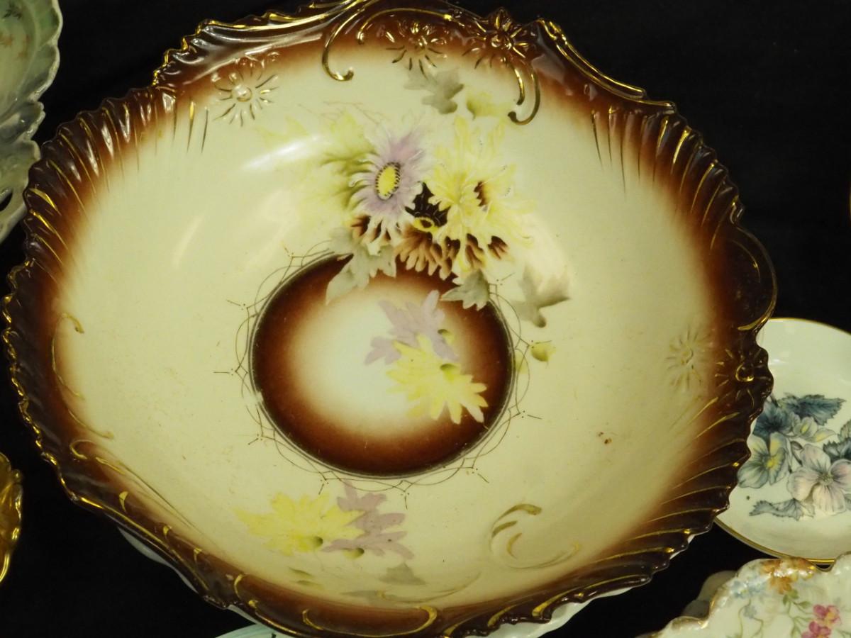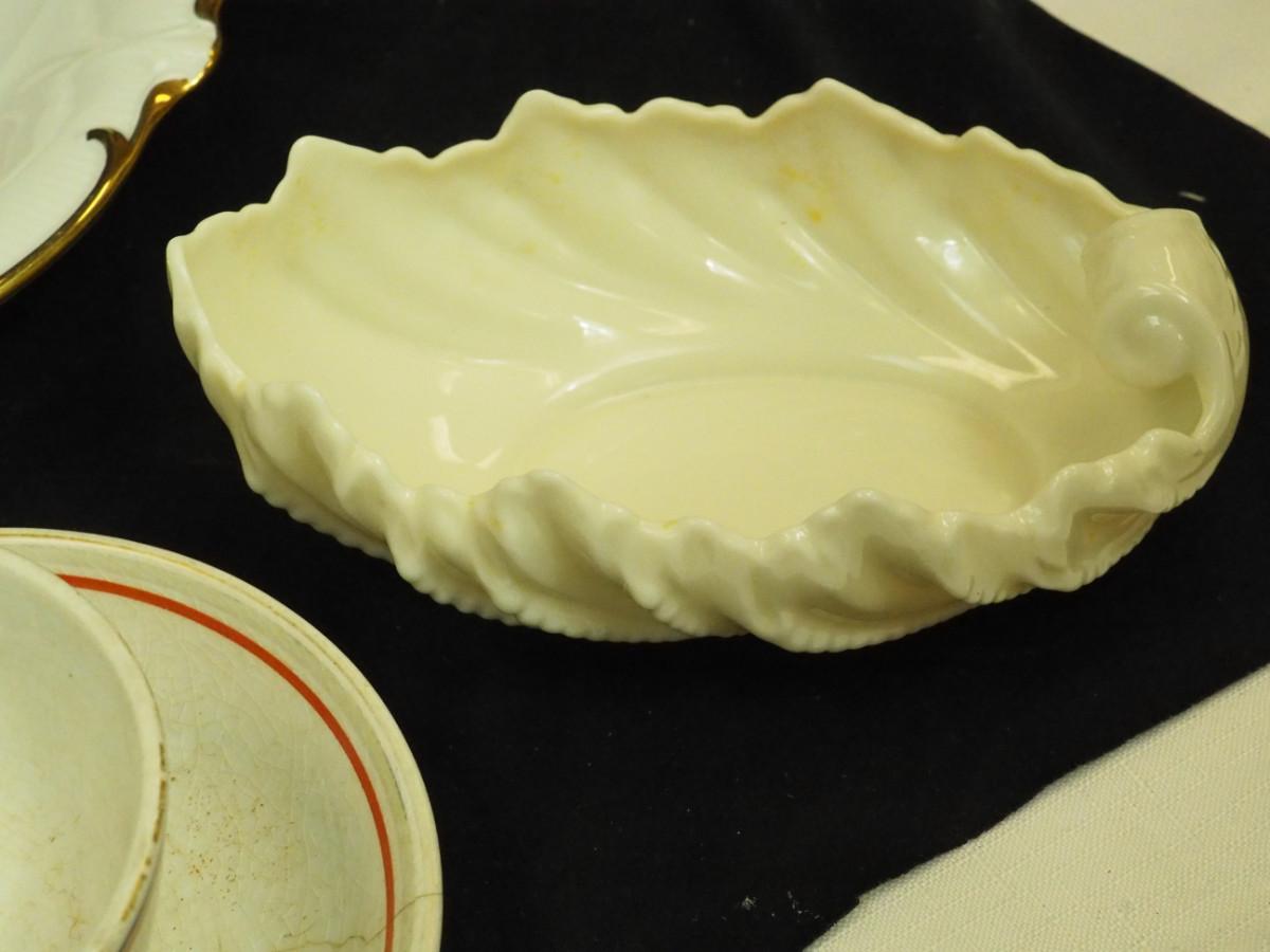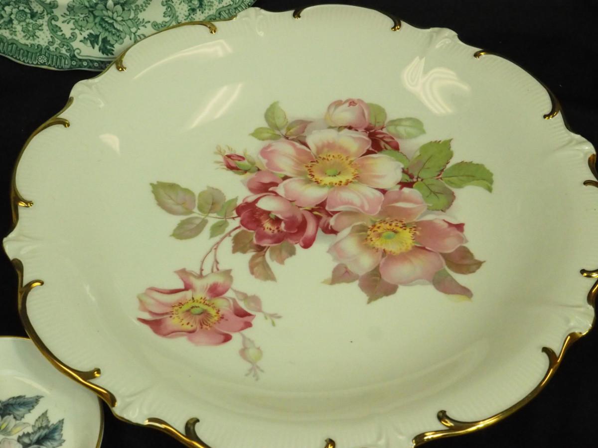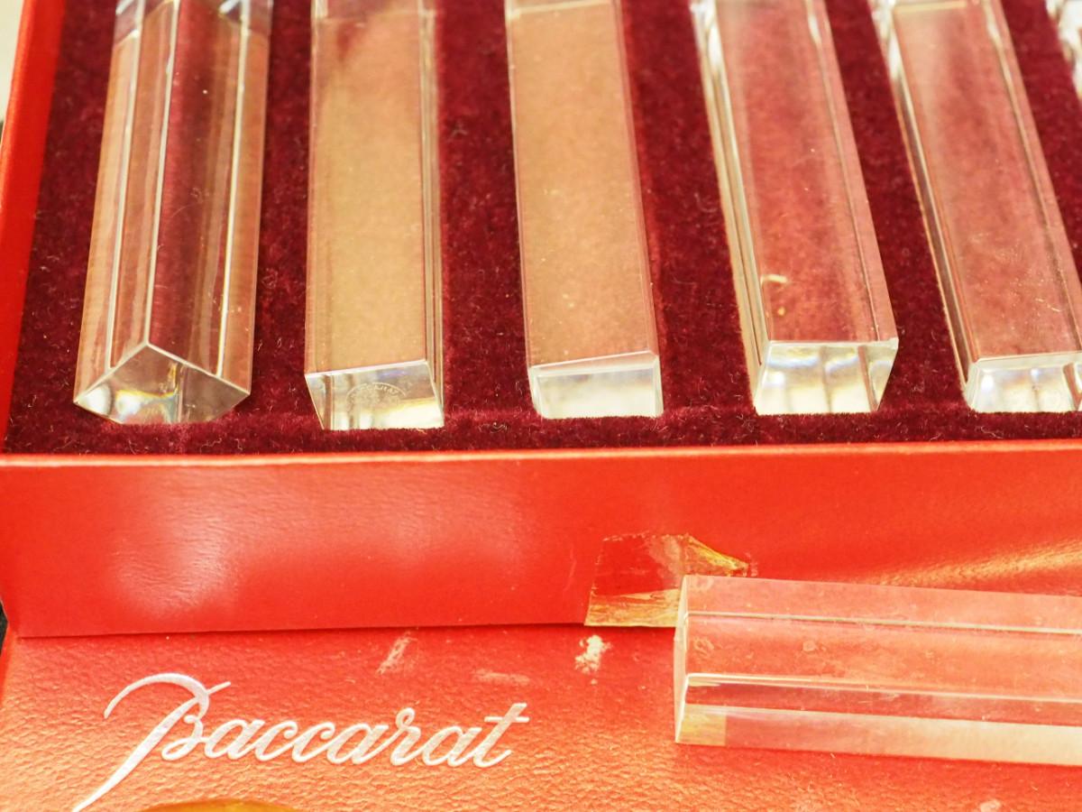 Lot-184 Hallmarked Antique bone china plates, 24 K gold plates, Baccarat crystal knife rests in original box. Lennox leaf bowl.