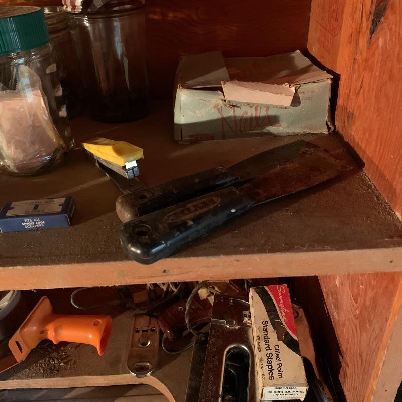 This mixed hardware lot has a little of everything. Staple guns, masonry tools, electric tools, grease gun, hardware storage, lots of random bolts and nails and some other odds and ends. See pictures to determine the content of this lot. Local pickup only.