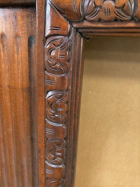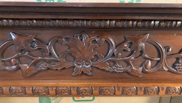 Has raised scrollwork. Measurement: 55"L x 50 1/2"H x 8"D