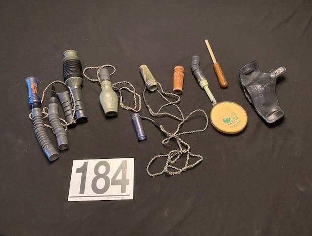 Includes duck calls, turkey calls, and more. Yella Hammer, Knight & Hale, Primos, and more. Total of 11 pieces. Estimated weight of lot: 5 lbs. Measurement: 15 1/2"L x 10"W