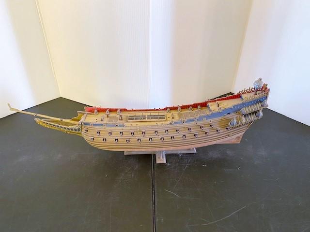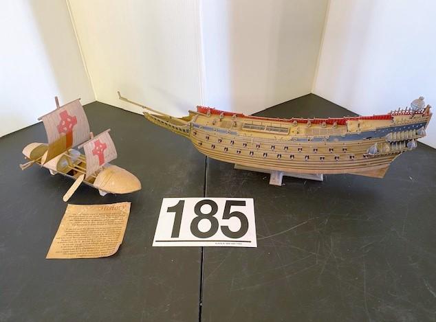 Two ships. One believed to be complete. One unfinished and incomplete. One is plastic and one is cloth construction. Measurement: 19"L (longest)