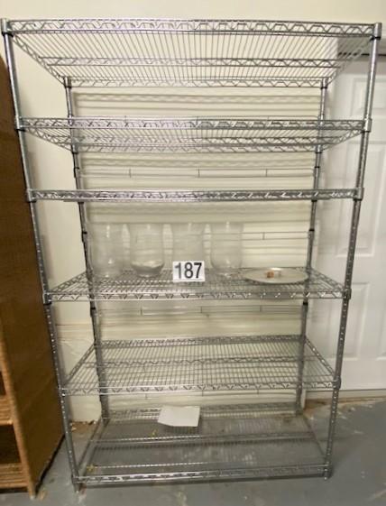 6 shelves. Includes vases. Measurement: 73"H x 48"W
