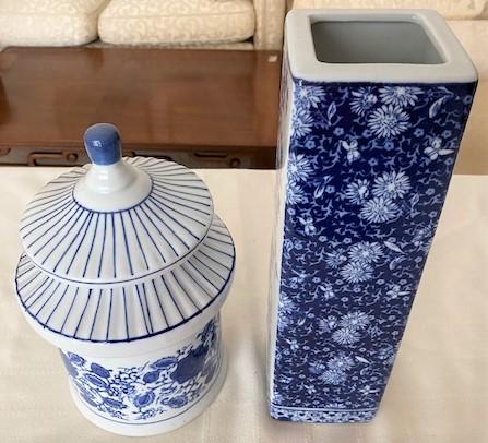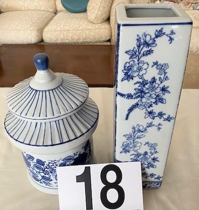 LOT#18LR: Pair of Asian Themed Jar & Vase