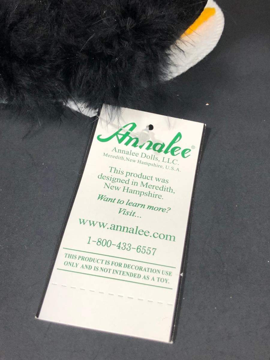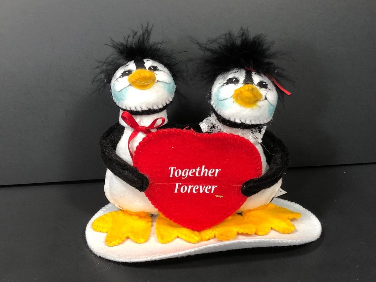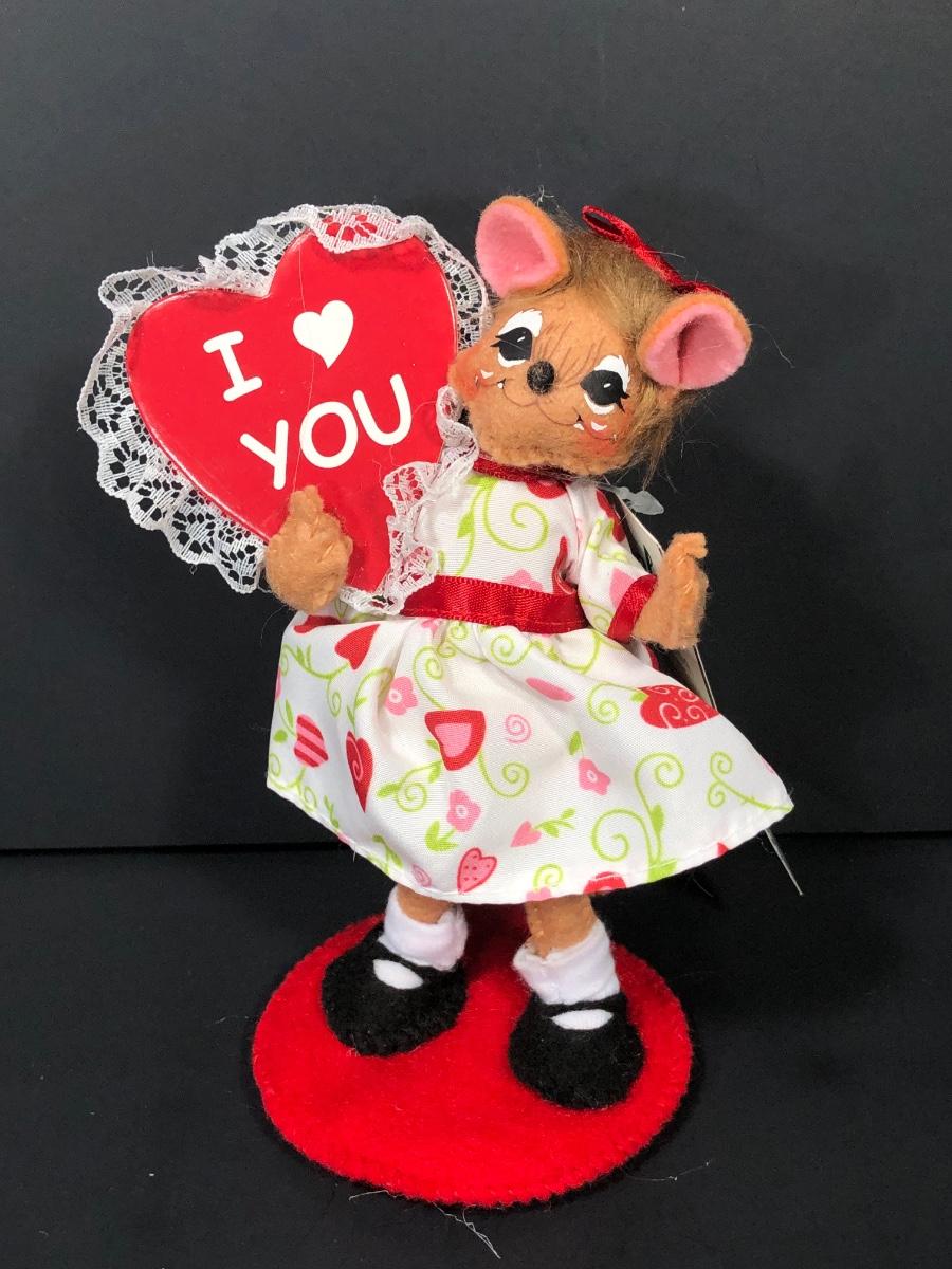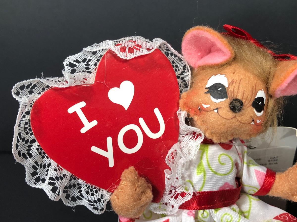 Collection of Valentine's Day themed Annalee dolls including: two 4" Valentine Kitties, 5" I love you Girl, 5" together forever penguins, & more without their tags.