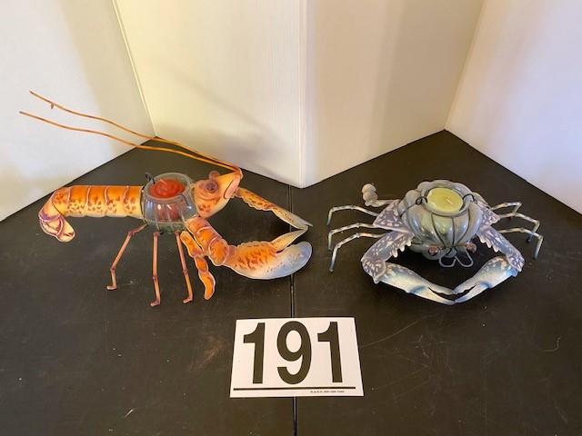 Lobster and Blue Crab. Metal construction. Measurement: 14"L (lobster)