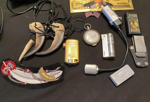 Includes Trump money, lighters, Garmin, Yeti, and more. Bear claws believed to be faux claws