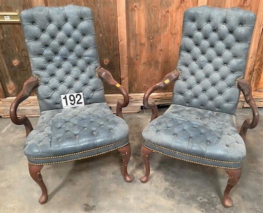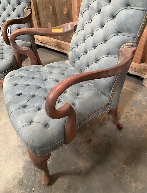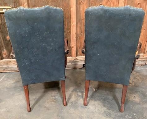 Believed to be faux leather. Sheppard arms. Measurement: 43"H x 24"W x 18"D