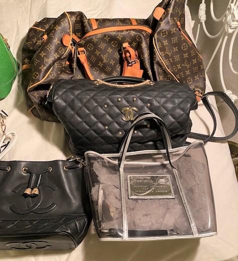Chanel, Vuitton, Jane Yoo, Myers, Koret & more. Chanel & Vuitton unverified. Estimated weight of lot: 20lbs. Measurement: 24"W x 16"H (largest)