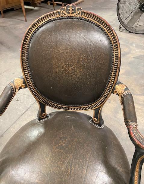 Appears to be faux leather. Measurement: 39"H x 23"W x 20"D