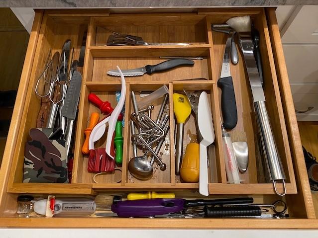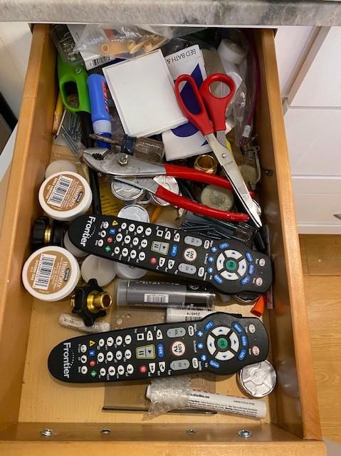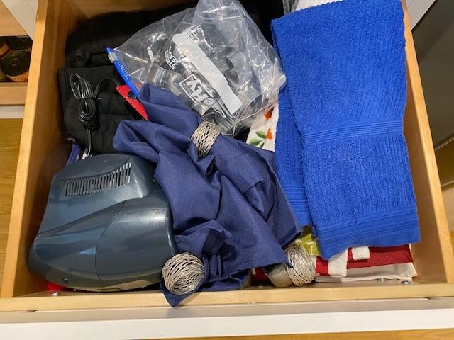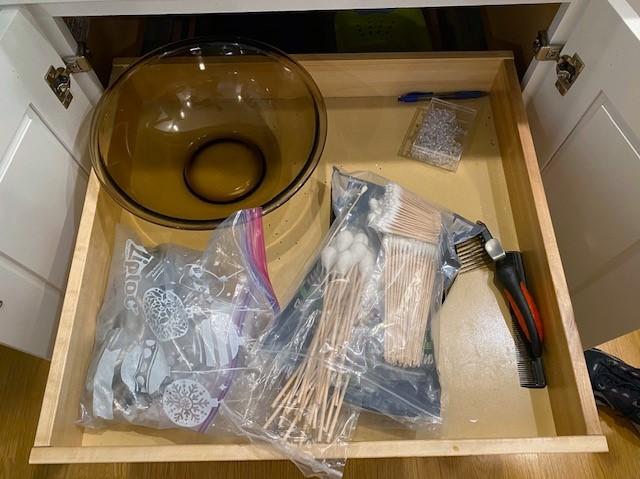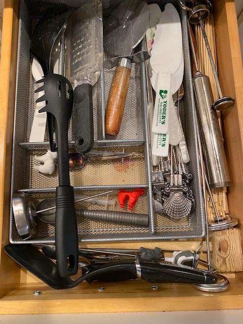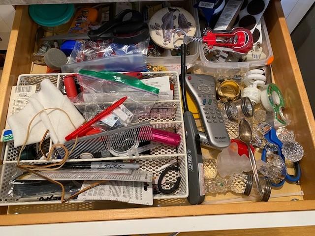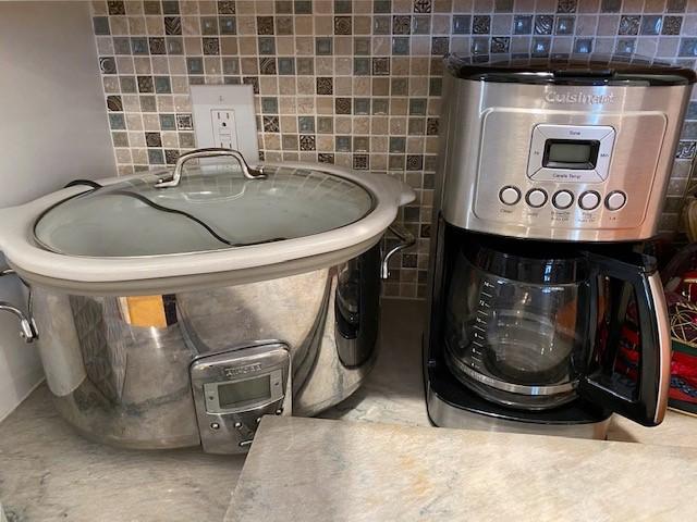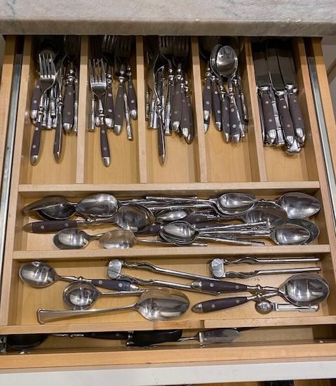 Includes stemware, coffee mugs, Cuisinart coffee pot, Brookstone wine chiller, paper products, flatware, dishes, utensils, and more. Does not include granite cutting boards.