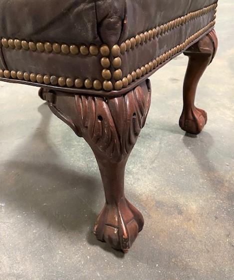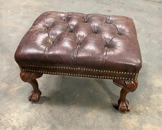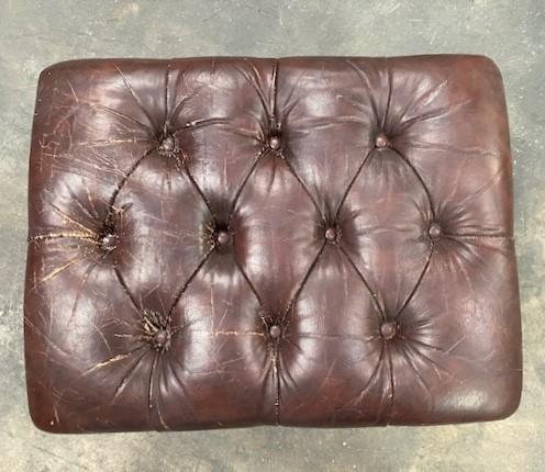 Victorian style. Appears to be leather; worn in areas. Measurement: 23"L x 17 1/2"W x 15"H