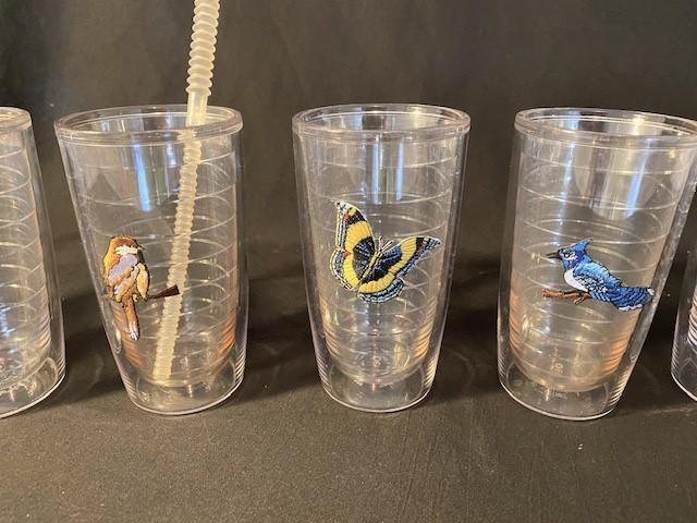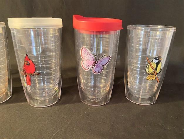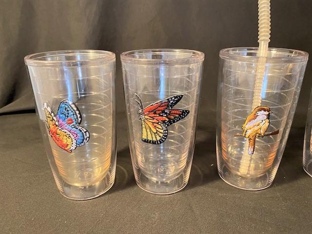 Birds & butterflies. Assorted lids & straws. Estimated weight of lot: 3lbs. Measurement: 8" x 11" (largest; each)