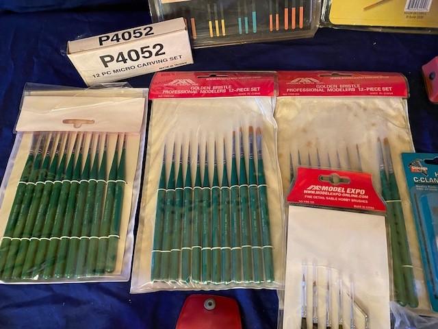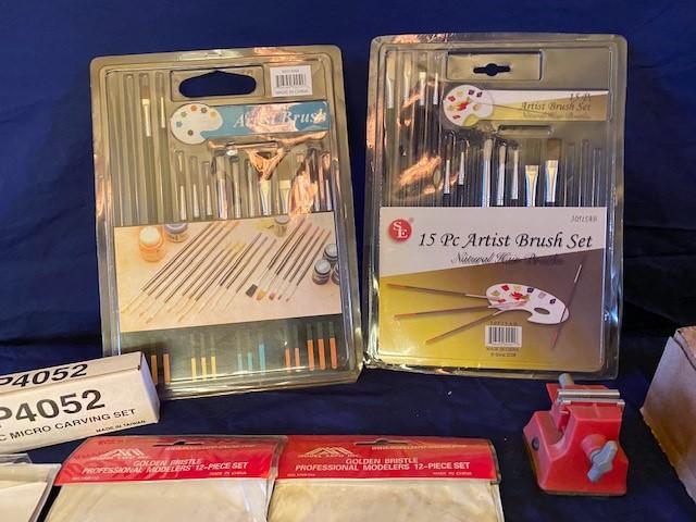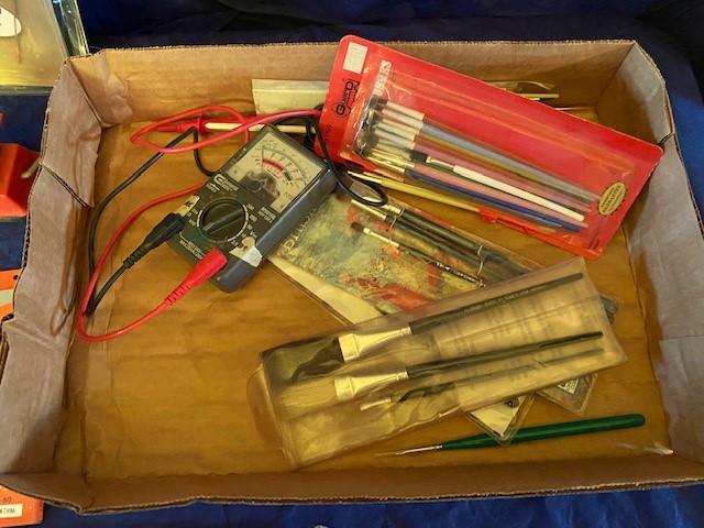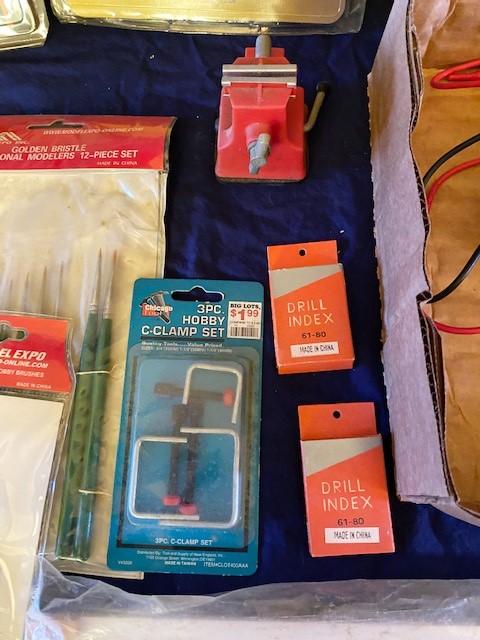 Includes paint brushes, mini vise, voltage meter, and more. Total of 19 pieces.