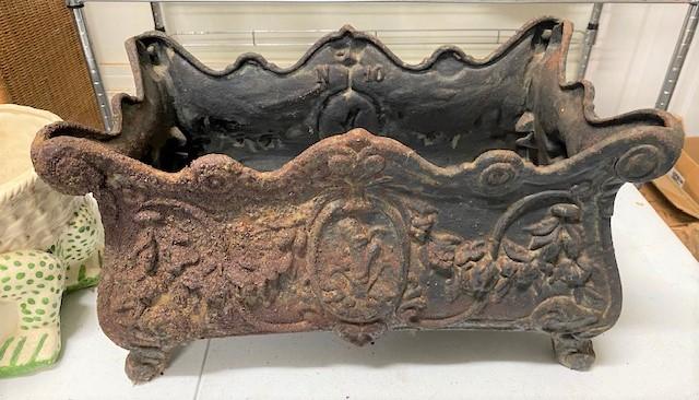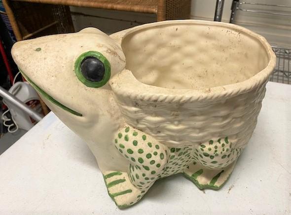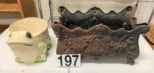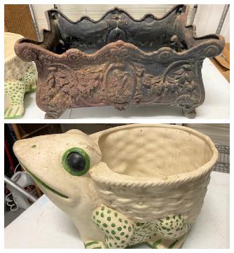 Foundry mark on vintage cast planter. One is ceramic frog planter.