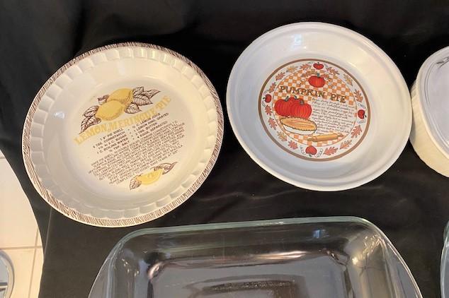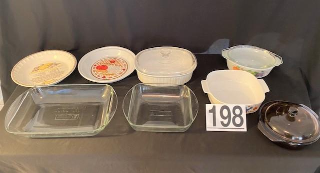 Fire King, Pyrex, Corelle, Anchor & more. Estimated weight of lot: 15lbs. Measurement: 16" x 9 1/2" (largest)