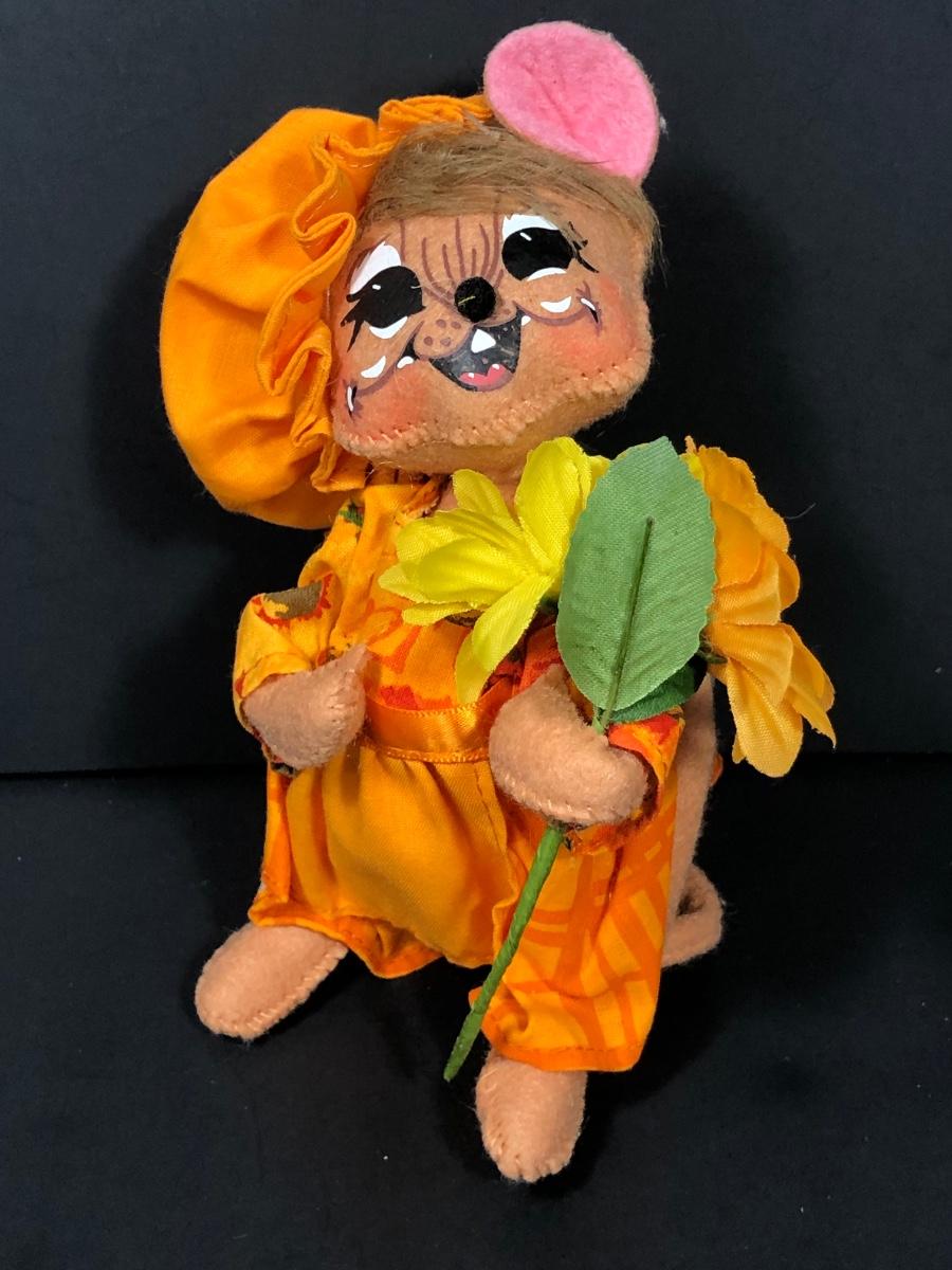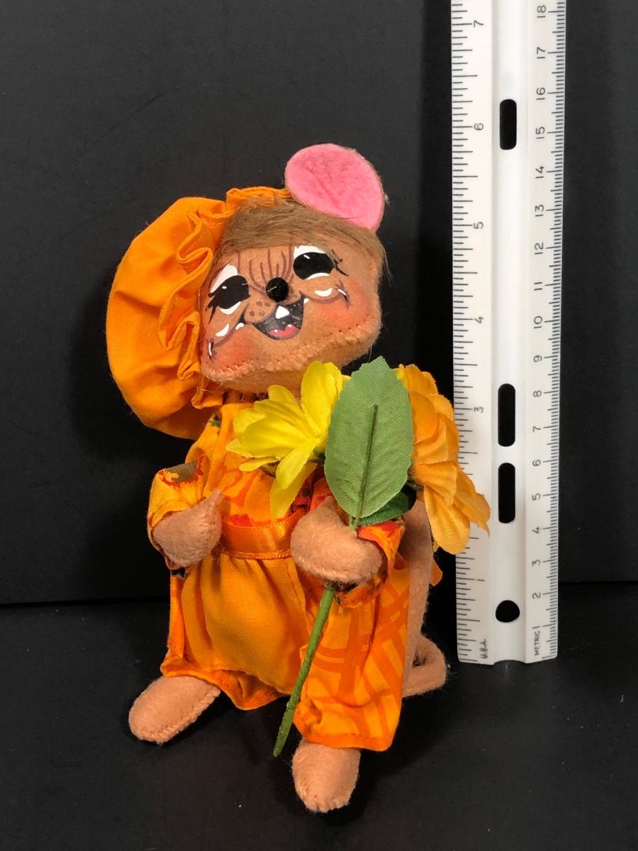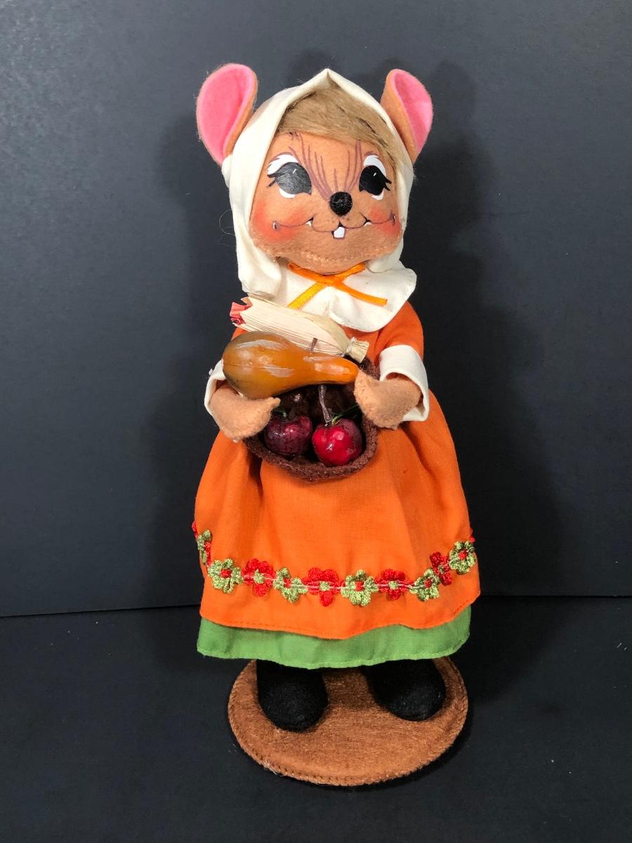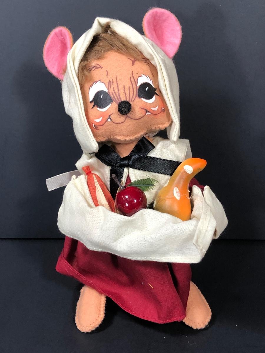 A collection of autumnal Annalee dolls including 7" Pilgrim Boy Turkey, 8" Pilgrim Girl Mouse, 6" Pilgrim Boy Mouse, 6" Pilgrim Girl Mouse, 6" Pilgrim Boy Chipmunk, 6" Autumn Leaf Mouse and more without tags.