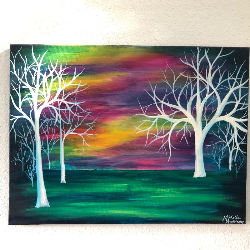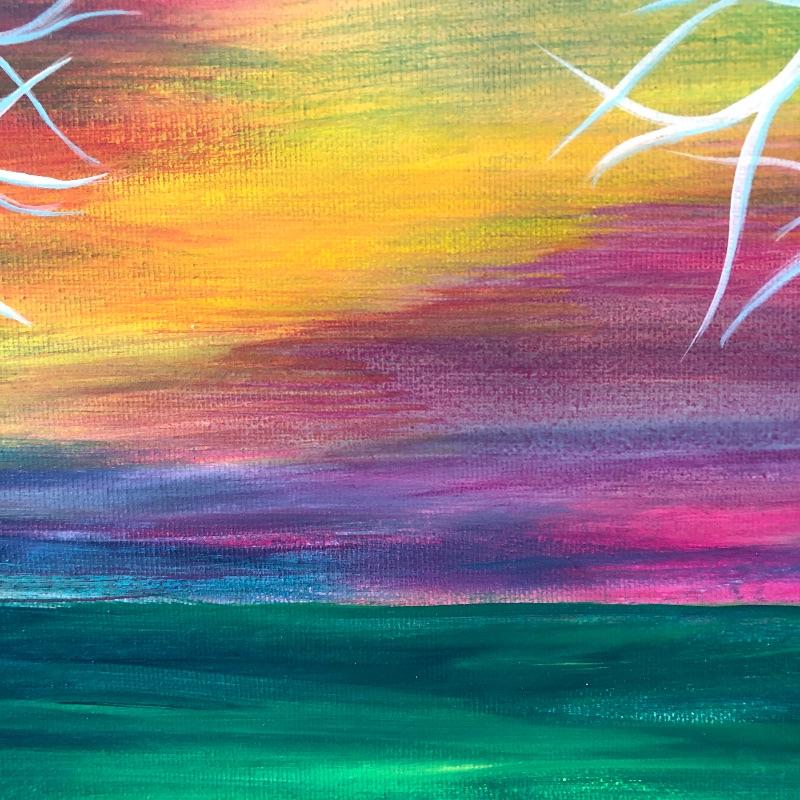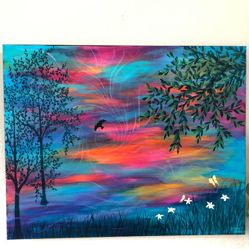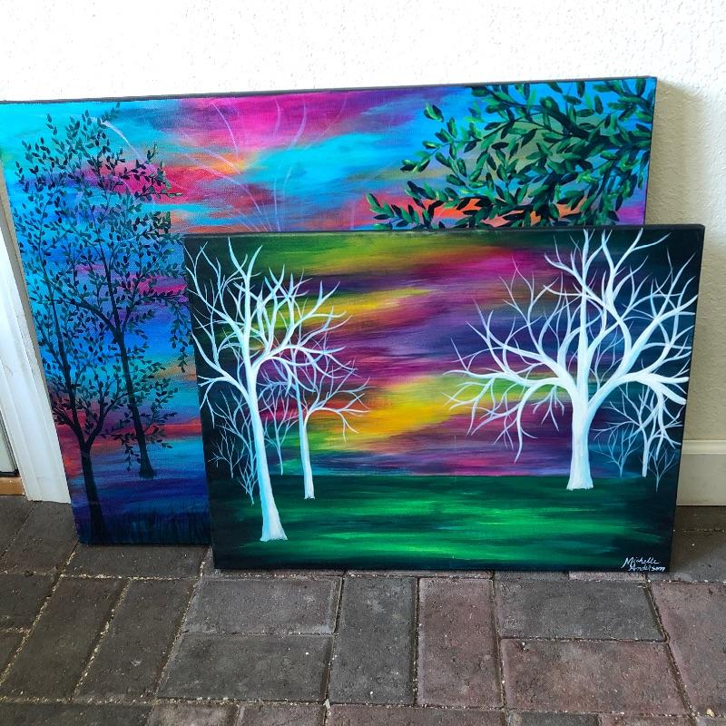 Two brilliant and bold abstract landscape art in acrylic. Focusing on landscape water colors, oils and sketches. Both paintings are wrapped on canvas over light wood frames and ready to hang.