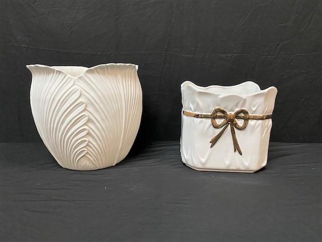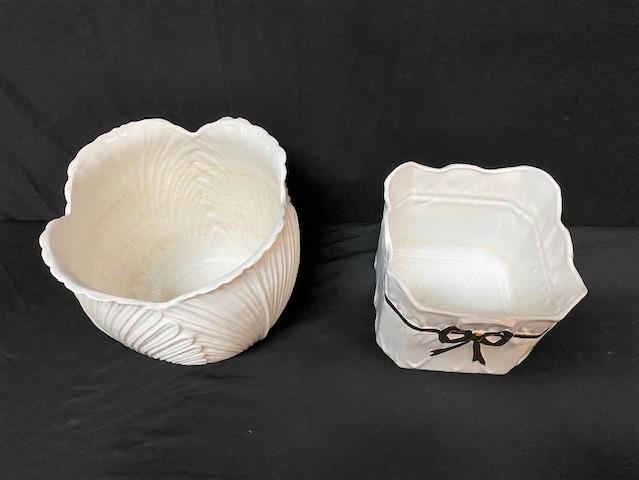 One is a votive style planter; other a package style (crack in it). Estimated total lot weight: 10lbs. Measurement: 12"H x 13" diameter (votive style)