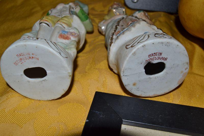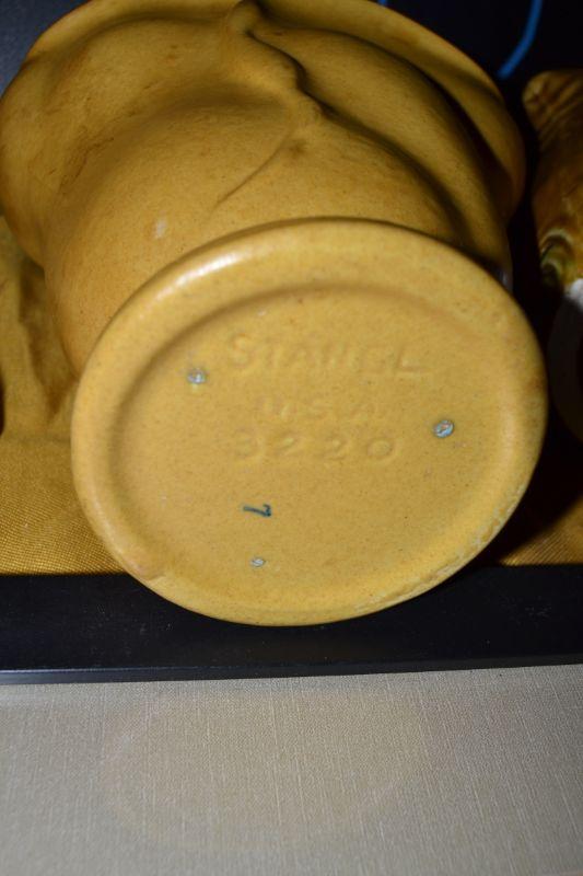 A Yellow Stangl Vase, Cute Squirrel Pitcher, Regal Ceramic Lady And Gent! This high class cultured couple demands you bid on them! ;)