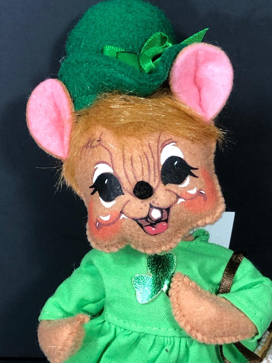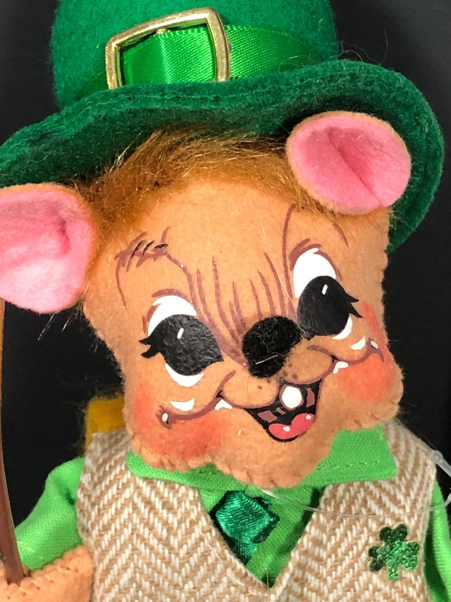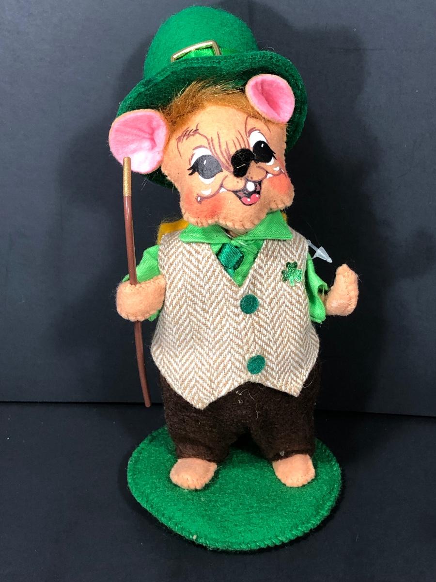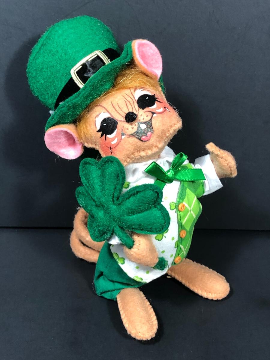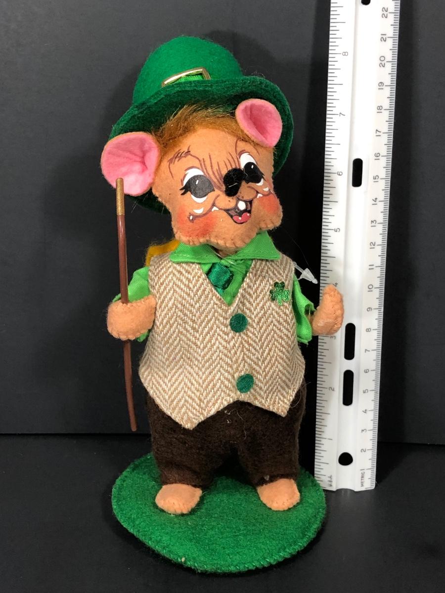 A collection of St. Patrick's day themed mice including 6" Leprechaun Boy Mouse, 6" Shamrock Chef Mouse, 5" Pot o' Gold Mouse, 6" St. Patrick's Girl Mouse, 6" Irish Whiskey Mouse, 6" Lass Mouse and more without tags.