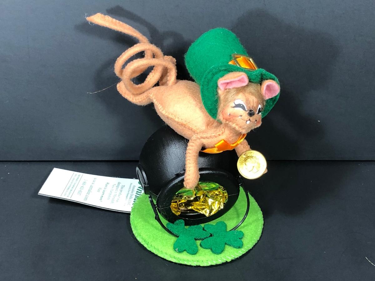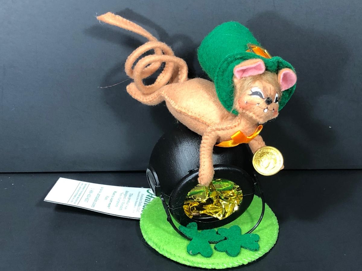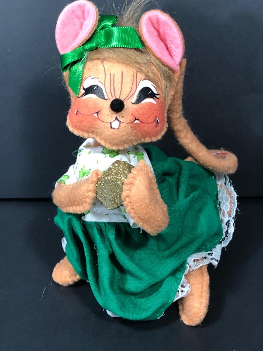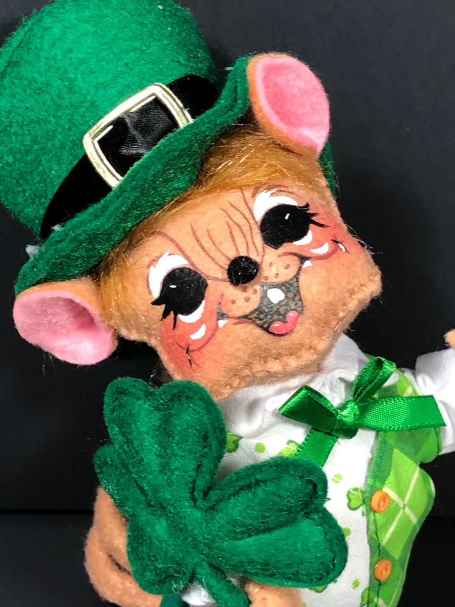A collection of St. Patrick's day themed mice including 6" Leprechaun Boy Mouse, 6" Shamrock Chef Mouse, 5" Pot o' Gold Mouse, 6" St. Patrick's Girl Mouse, 6" Irish Whiskey Mouse, 6" Lass Mouse and more without tags.