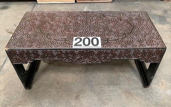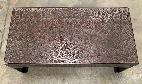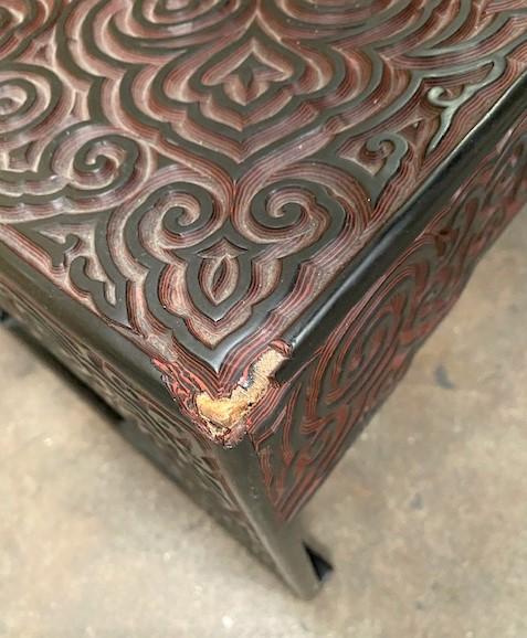 Intricate pattern. Damage to one corner. Measurement: 32"L x 16"D x 13"H