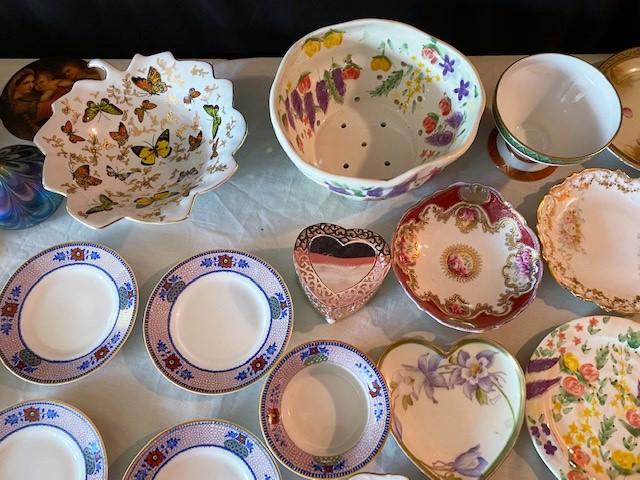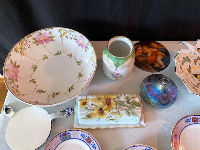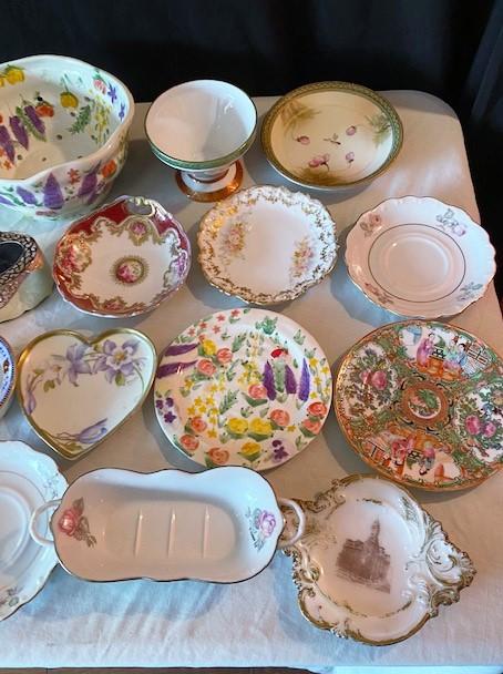 Some vintage, some contemporary. Includes famile rose, hand painted dishes, and more. Most from Germany and Japan. Total of 30 pieces.