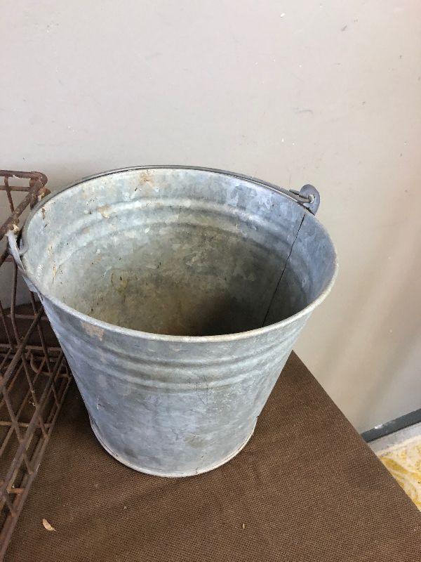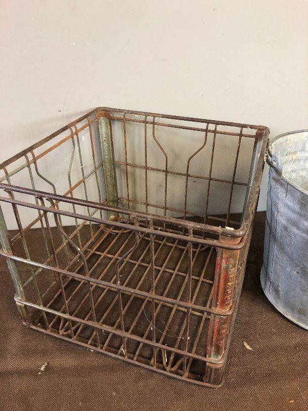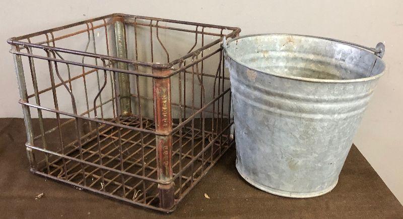 Lot#202 Galvanized Pail and Wire Milk Crate